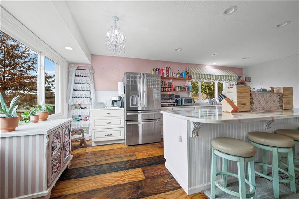 Gorgeous home on 14.62 acres — your own private paradise! Enjoy peaceful country living with a stocked pond and covered deck, 30x30 shop with 12x60 and 10x30 lean-tos, multiple fenced areas, chicken coop, outbuildings, creek, trees, and amazing landscaping with tons of flowers. Owner’s pride shines throughout this beautifully maintained property! Inside, you’ll find bamboo flooring throughout, vaulted ceilings, and a welcoming open layout. The kitchen features updated countertops, ample cabinetry, and opens nicely to the living area with fireplace. Finished walkout basement offers a large family room, bedroom, bath, and plenty of storage space. The barn includes 5 stalls, and the tinted windows help keep utilities low. Relax on your back deck overlooking the pond, fish in your own water, or watch the abundant wildlife — deer, birds, and more! This is truly a one-of-a-kind property, move-in ready and perfectly set up for peaceful country living. 4 bedrooms | 3 baths | Finished walkout basement | 14.62 acres | Shop, barn, pond & more!