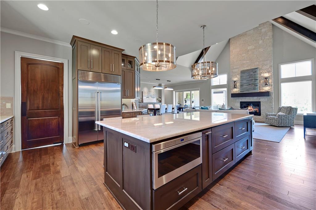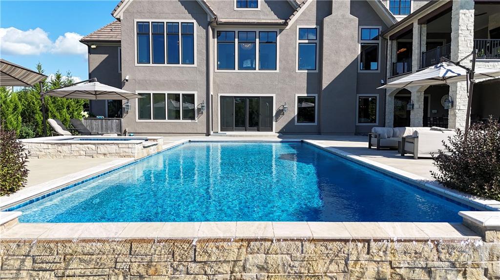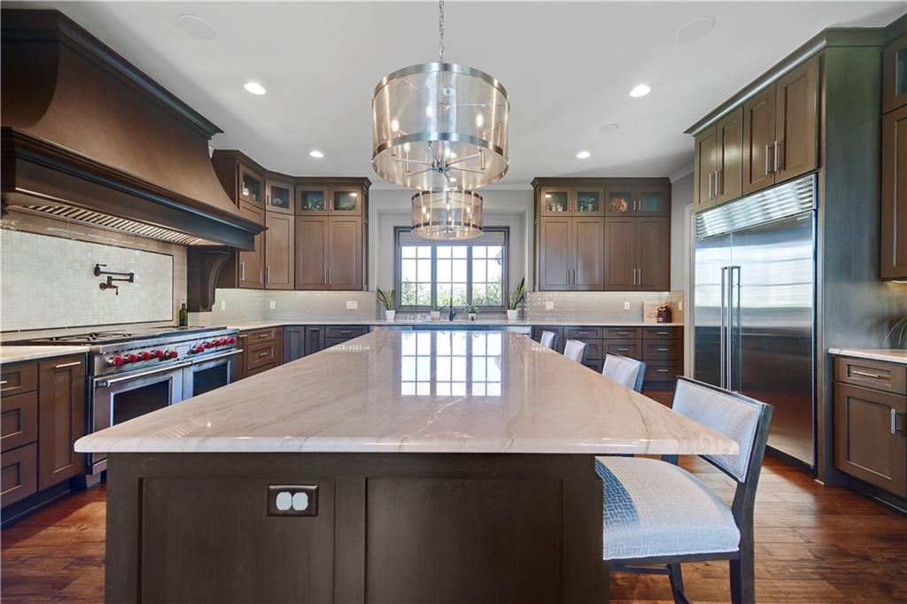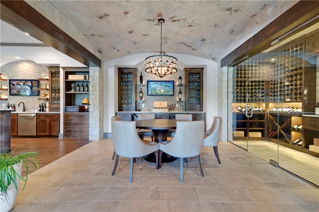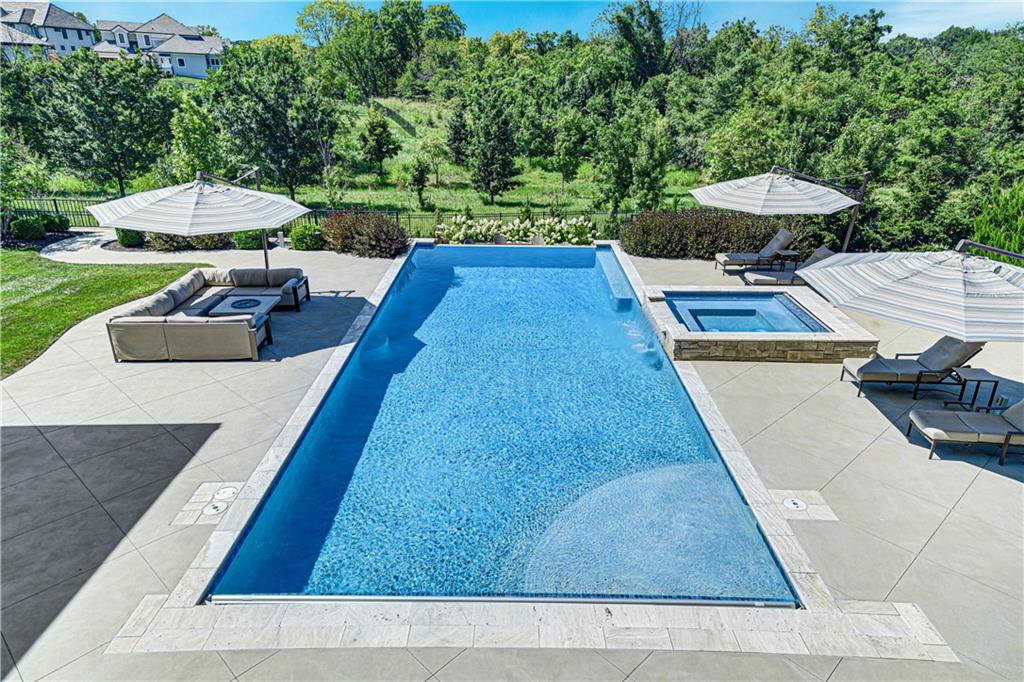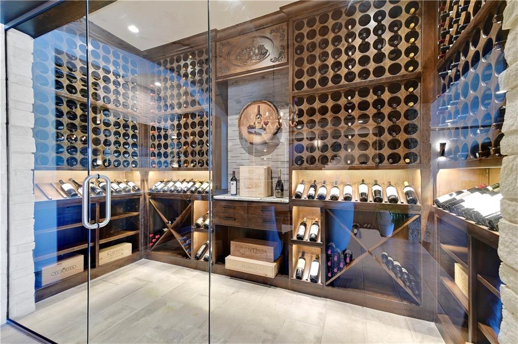 Welcome to this Bickford-designed, Koehler custom-built masterpiece—an extraordinary home that perfectly blends sophistication, comfort, & resort-style living. Nestled on a picturesque ¾-acre lot backing to greenspace, this home is a true sanctuary with every detail thoughtfully curated for an exceptional lifestyle. Stately custom iron doors welcome you into light-filled living spaces featuring a dramatic living room which dazzles with walls of windows, custom built-ins, and a designer ceiling with cove lighting. A cozy hearth room features a soaring vaulted ceiling with beams, and a two-story fireplace.The gourmet kitchen is a showstopper, boasting a massive quartz island, custom-painted cabinetry, beverage refrigerator,luxury appliances, double dishwashers, & a spacious butler’s pantry. A large mudroom with built-in desk and cabinetry ensures organization meets style. Retreat to the primary suite, with a box-beam ceiling, built in desk, spa-like bathroom with double vanities & a dreamy walk-in closet with its own laundry. Upstairs, you'll find three additional bedrooms each feature private baths and walk-in closets, plus a hidden playroom tucked into the dormer space.The lower level is a wow! It includes a vast rec room, temperature-controlled wine cellar, full bar, dedicated gym, fifth bedroom, full bath, sauna, anti-static AV room, and an oversized walk-in pantry with refrigerator. A 6-car garage with epoxy flooring, built in storage, & a 50-amp circuit provides room for all the cars & toys. The showcase backyard includes an oversized 20' x 50' heated saltwater pool with spa, infinity-edge waterfall, & automatic cover—an entertainer’s dream! It is complemented by two firepits & a covered deck with heaters, fireplace, and retractable screens. A full outdoor kitchen on the lanai is surrounded by extensive landscaping & a fenced yard. Enhanced with smart-home technology, home offers both cutting-edge convenience & timeless craftsmanship.