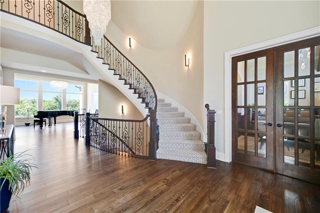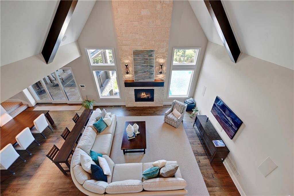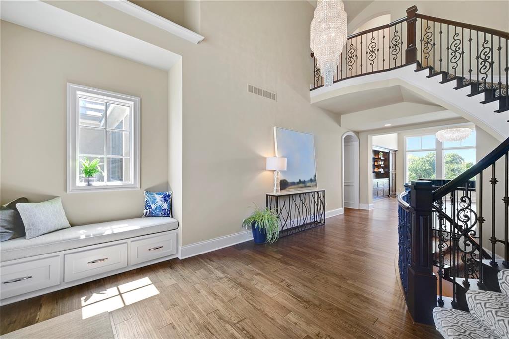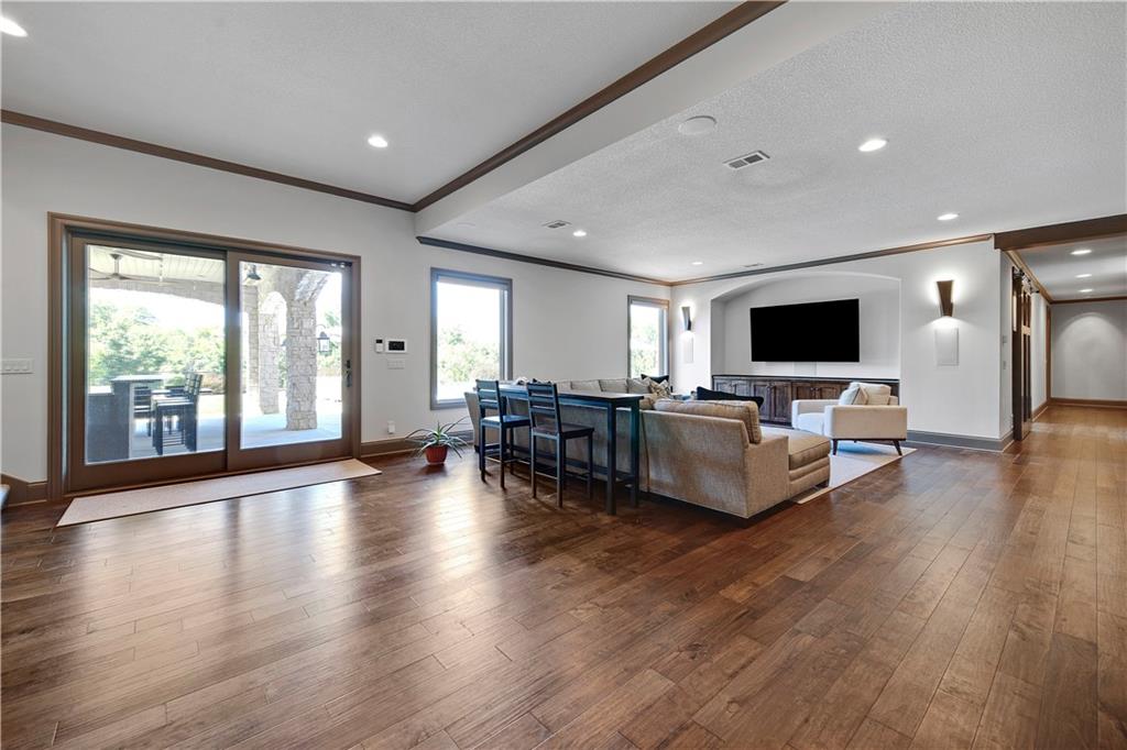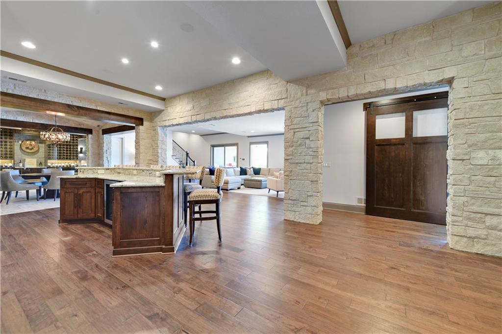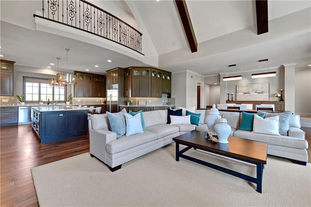 Welcome to this Bickford-designed, Koehler custom-built masterpiece—an extraordinary home that perfectly blends sophistication, comfort, & resort-style living. Nestled on a picturesque ¾-acre lot backing to greenspace, this home is a true sanctuary with every detail thoughtfully curated for an exceptional lifestyle. Stately custom iron doors welcome you into light-filled living spaces featuring a dramatic living room which dazzles with walls of windows, custom built-ins, and a designer ceiling with cove lighting. A cozy hearth room features a soaring vaulted ceiling with beams, and a two-story fireplace.The gourmet kitchen is a showstopper, boasting a massive quartz island, custom-painted cabinetry, beverage refrigerator,luxury appliances, double dishwashers, & a spacious butler’s pantry. A large mudroom with built-in desk and cabinetry ensures organization meets style. Retreat to the primary suite, with a box-beam ceiling, built in desk, spa-like bathroom with double vanities & a dreamy walk-in closet with its own laundry. Upstairs, you'll find three additional bedrooms each feature private baths and walk-in closets, plus a hidden playroom tucked into the dormer space.The lower level is a wow! It includes a vast rec room, temperature-controlled wine cellar, full bar, dedicated gym, fifth bedroom, full bath, sauna, anti-static AV room, and an oversized walk-in pantry with refrigerator. A 6-car garage with epoxy flooring, built in storage, & a 50-amp circuit provides room for all the cars & toys. The showcase backyard includes an oversized 20' x 50' heated saltwater pool with spa, infinity-edge waterfall, & automatic cover—an entertainer’s dream! It is complemented by two firepits & a covered deck with heaters, fireplace, and retractable screens. A full outdoor kitchen on the lanai is surrounded by extensive landscaping & a fenced yard. Enhanced with smart-home technology, home offers both cutting-edge convenience & timeless craftsmanship.