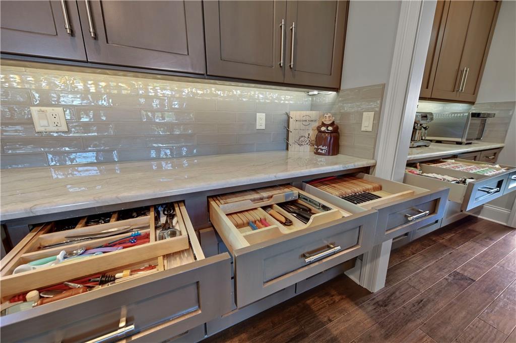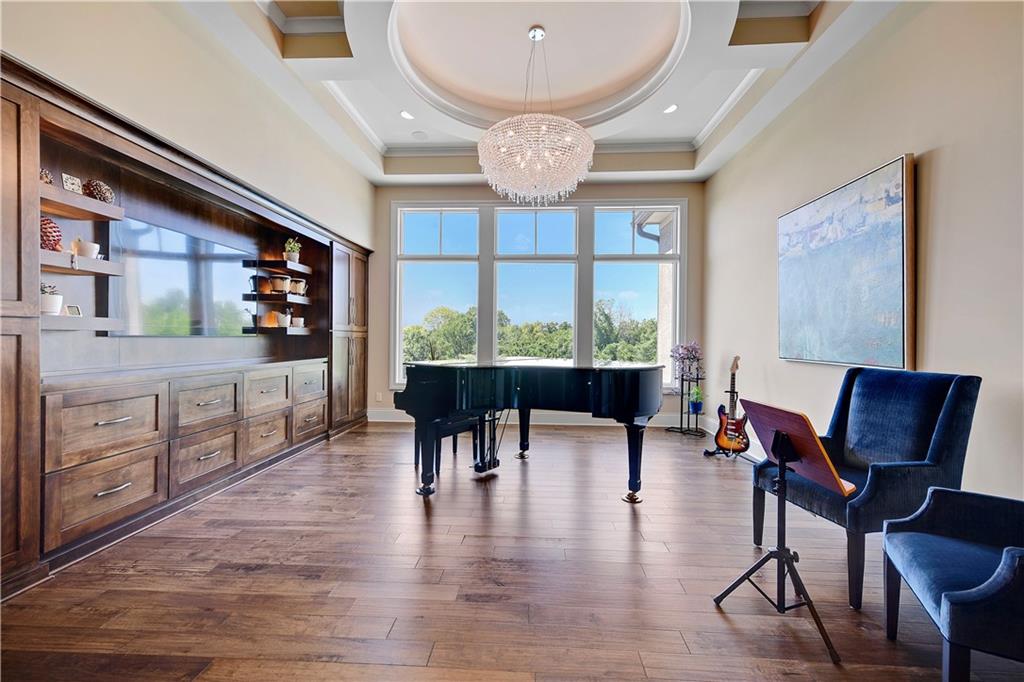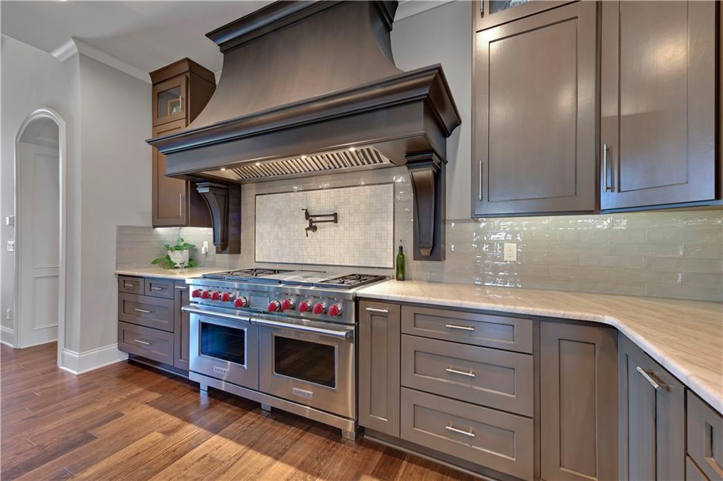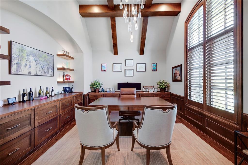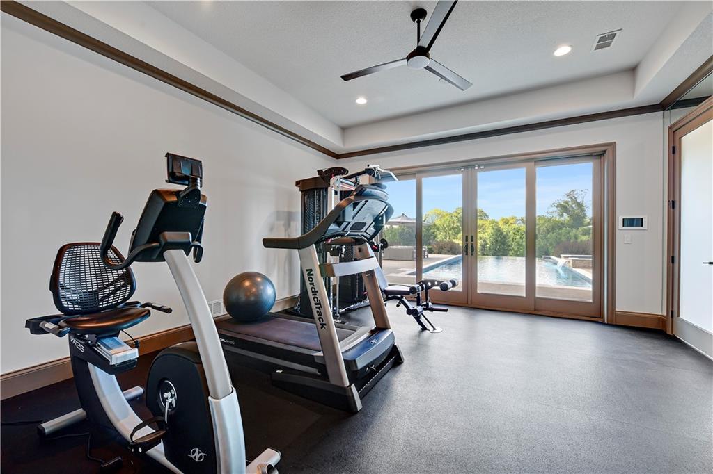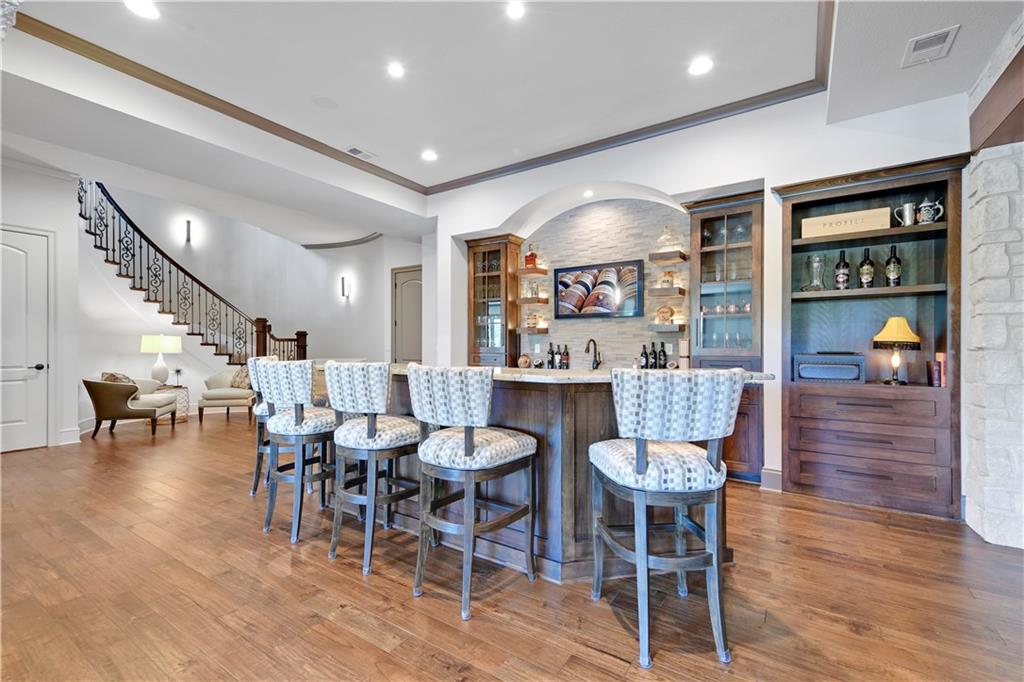 Welcome to this Bickford-designed, Koehler custom-built masterpiece—an extraordinary home that perfectly blends sophistication, comfort, & resort-style living. Nestled on a picturesque ¾-acre lot backing to greenspace, this home is a true sanctuary with every detail thoughtfully curated for an exceptional lifestyle. Stately custom iron doors welcome you into light-filled living spaces featuring a dramatic living room which dazzles with walls of windows, custom built-ins, and a designer ceiling with cove lighting. A cozy hearth room features a soaring vaulted ceiling with beams, and a two-story fireplace.The gourmet kitchen is a showstopper, boasting a massive quartz island, custom-painted cabinetry, beverage refrigerator,luxury appliances, double dishwashers, & a spacious butler’s pantry. A large mudroom with built-in desk and cabinetry ensures organization meets style. Retreat to the primary suite, with a box-beam ceiling, built in desk, spa-like bathroom with double vanities & a dreamy walk-in closet with its own laundry. Upstairs, you'll find three additional bedrooms each feature private baths and walk-in closets, plus a hidden playroom tucked into the dormer space.The lower level is a wow! It includes a vast rec room, temperature-controlled wine cellar, full bar, dedicated gym, fifth bedroom, full bath, sauna, anti-static AV room, and an oversized walk-in pantry with refrigerator. A 6-car garage with epoxy flooring, built in storage, & a 50-amp circuit provides room for all the cars & toys. The showcase backyard includes an oversized 20' x 50' heated saltwater pool with spa, infinity-edge waterfall, & automatic cover—an entertainer’s dream! It is complemented by two firepits & a covered deck with heaters, fireplace, and retractable screens. A full outdoor kitchen on the lanai is surrounded by extensive landscaping & a fenced yard. Enhanced with smart-home technology, home offers both cutting-edge convenience & timeless craftsmanship.