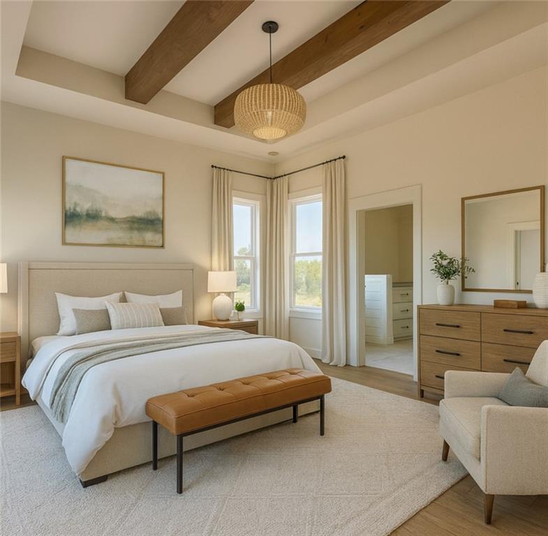 Builder Special: $10,000 for buyer to use how you choose! Use it towards price reduction, upgrades, appliances, closing costs, etc! Do not miss this amazing opportunity Welcome to KC Builders & Designs Geneva 1.5 story plan, featuring a grand curved staircase at the entry and beautiful hardwood floors throughout. The gourmet kitchen boasts a large center island, ample cabinetry, and a spacious walk-in pantry. The main-level primary suite offers a luxurious bathroom retreat, while an additional bedroom or office with a ¾ bath adds flexibility. Upstairs, each secondary bedroom includes a generous walk-in closet. With a 3-car garage and thoughtful design throughout, this home perfectly blends elegance, function, and comfort. Home can close first week of November 2026