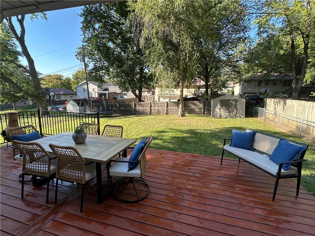 This charming home in a desirable neighborhood has a Kansas City address in the Raytown school district. It is beautifully updated with an open floor plan...and it's move-in ready! Home features an open living space with direct access to a spacious fenced backyard complete with a deck—perfect for relaxing. Updates include recessed lighting, fresh interior paint and low-maintenance exterior siding - with the convenience of a spacious 2 car attached garage. And, the big stuff has been done: furnace & central air are ~3 years old and the roof is ~8 years. Plus, the washer and dryer stay. This home is nestled in a quiet, well-kept neighborhood with quick access to schools, shopping and major highways. BONUS: It's just 5 minutes from Sarah Colman-Livengood Park, featuring 15 acres of walking trails, tennis and pickleball courts, playgrounds and picnic shelters—a wonderful outdoor escape close to home!