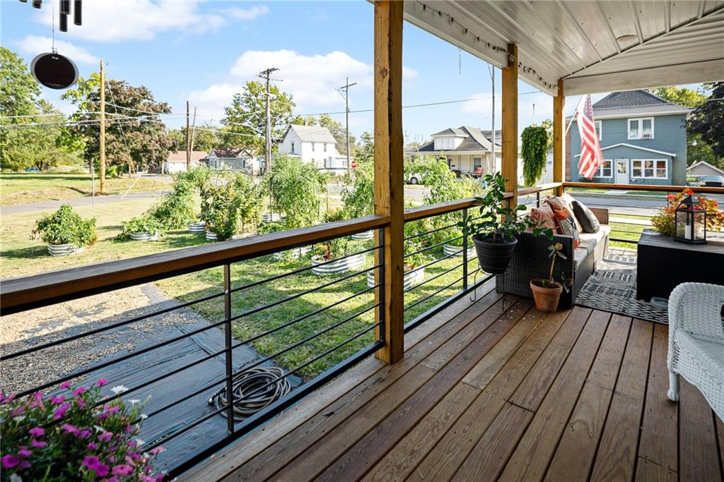 A timeless masterpiece! This home has been renovated with no expense spared, fully restored from top to bottom! You will be delighted by the new-construction feel, mixed with a historic layout and charm. This stately home features tall ceilings, luxury vinyl plank floors, and over 1,900 SQFT of living space across two levels. As you enter the home, you are welcomed into the living room, also on the main level is the formal dining area, a half bath, and the custom kitchen. The cabinets are all handmade and feature soft-close drawers. The kitchen counters are granite, with colors selected to perfectly complement the cabinetry. There is a dutch-door in the kitchen, which is something unique you certainly would not see on a new build today! Also off the kitchen is a full walk in pantry. Heading upstairs, there are three bedrooms. You enter into the hallway, where the laundry area is. Off the side there is a full bathroom, with an Onyx shower, and cabinetry to match the kitchen. Heading into the master, it has a walk in closet, and full on suite bathroom as well finished in the same style. The basement allows for a ton of extra storage space, with updated systems, gas heat, and a tankless water heater. The 0.35 acre corner lot is a gardener's paradise. There are many raised garden beds featuring everything from peppers to raspberries. The home has two porches, one that wraps around the front, facing south and east. Another just off the kitchen. This home is the perfect place to entertain, with tons of indoor and outdoor space, with unmatched custom construction quality! Take a look today! The windows and hvac are under transferable warranty!