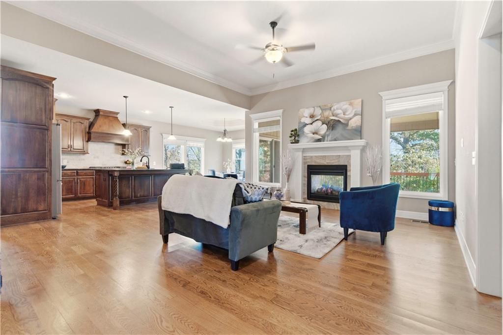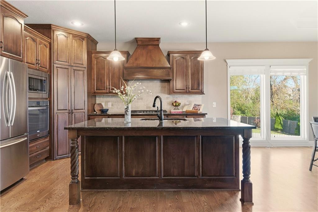BOM - no fault to the sellers. This has all you need (plus extra) without the wait of a build job. Impeccably Maintained Reverse 1.5-Story Backing to Green Space! This stunning home has been lovingly cared for and offers a spacious, open layout that’s perfect for both everyday living and entertaining. Featuring 4 bedrooms — 2 on the main level and 2 on the lower level—you’ll enjoy flexibility and room to grow. With two living spaces and a bonus area just waiting for all the many uses you will dream of, you will find a perfect layout and one that has received many compliments. The main level boasts a bright, open kitchen complete with hardwood floors, a frig, a walk-in pantry, and convenient main-level laundry tucked behind the kitchen. The expansive great room flows beautifully into the kitchen and dining area, creating a warm and welcoming atmosphere. And, it's perfect for those who want to open up the shades and capture the green space and nature right in your backyard. You can enjoy this lovely view right from your living room, or soak in the view from the deck right off the kitchen. To top off this peaceful atmosphere, enjoy the see-through fireplace both inside and out. Perfect for entertaining as well. Downstairs, the finished basement is an entertainer's dream and includes a wet bar, rec room, and dedicated media room—ideal for movie nights or hosting parties and game nights. You can also use this bonus space for a kids play area as well. Also, off of the family room is another outside space. The covered patio is perfect for more outside enjoyment and added privacy and tranquility. Shall we say - 'great place to put your future hot tub?' ;) Plus, this home also has 2 small storage areas AND that third car garage, adding to the many great features. Call and set up your showing today.