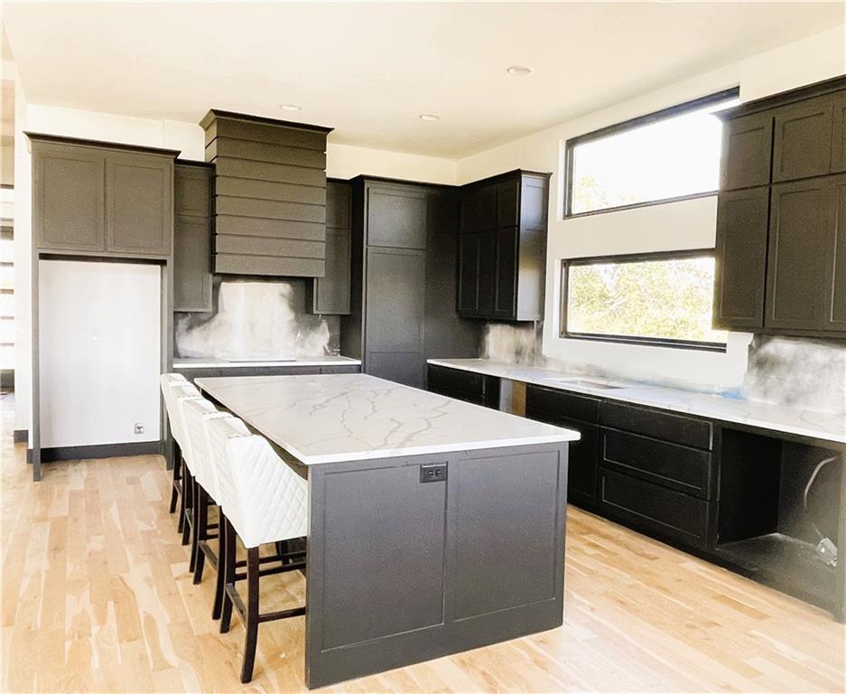 WaterCrest Landing | Sunset Views. Elevated Living. Affordable New Construction - Distinctive Modern Design with Elevated Finishes in WaterCrest Landing Welcome to a masterpiece of contemporary luxury in the coveted, maintenance-provided WaterCrest Landing. This home is a testament to sophisticated design, offering an unparalleled living experience just steps from the natural beauty of Lake Lenexa and Black Hoof Park. If you like to entertain, this home is for you! Located in a private cul-de-sac, step inside and be captivated by the distinctive modern design, characterized by an open and bright layout and dramatic high ceilings throughout. The main level features a seamless flow, unified by stunning White Oak plank floors and accented by impressive 8-foot modern doors. The gourmet kitchen is a work of art, boasting a spacious island and backsplash adorned with beautiful quartz, featuring a dramatic 3-inch edging with a waterfall edge. Culinary excellence meets high design in this functional and striking space. Retreat to the luxurious main floor primary suite, a sanctuary of unique details. Indulge in the spa-like master bath, featuring a floating wall vanity and a walk-in walk-behind shower. The primary closet is a true dream, complete with an insane shoe wall and a wealth of custom shelving and vanity built-ins. The home’s expansive functionality continues in the walkout lower level, featuring impressive 10-foot ceilings. This level hosts a huge, open-concept space anchored by a large wet bar, along with generously-sized additional bedrooms. This area is perfect for entertaining. Enjoy serene outdoor living with a beautiful backyard overlooking a peaceful greenspace and pond view. This property's prime location, custom-level finishes, and brilliant architectural design offer a rare opportunity for discerning buyers. Move-in ready luxury awaits—this is an absolute must-see.