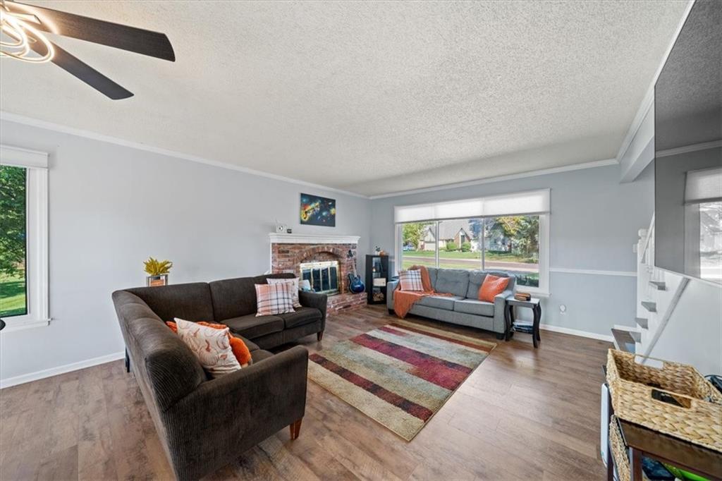 Welcome to Oak Park Manor. This 1.5-story home offers an excellent opportunity to build equity in one of Overland Park’s most convenient locations. The home sits adjacent to the neighborhood micro-park, soon to feature new playground equipment, providing a wonderful outdoor extension for play and relaxation. Inside, you’ll find a spacious family room with all new windows, a brick fireplace, and an open layout that flows into the generous sized kitchen - perfect for entertaining. The kitchen provides abundant counter space, cabinetry, and room to gather. The main level also features the primary suite with two large closets, a full bath, and a versatile bonus room ideal for an office, nursery, or sitting area (also has it's own closet and could easily serve as a true 4th bedroom). The floor plan offers true functionality with main-floor laundry, a double side-entry garage, and a flat driveway ideal for bikes or basketball. Upstairs are two additional bedrooms and a full bath. The unfinished lower level allows room for future expansion or ample storage. Recent updates include new interior paint, newer roof (approximately 4 years old), and all new windows. Light, bright, and ready for new owners, this home combines comfort and potential in a sought-after setting. This home backs to 435 and there is road noise when approaching the property. Inside the home, noise is significantly reduced due to the new windows, but if traffic noise is a deal breaker, this is likely not the one for you. If we could adjust the location, we certainly would It is priced accordingly and represents a strong value for size, location, and potential. Enjoy easy access to parks, trails, schools, shopping, restaurants, and healthcare, all just minutes away.