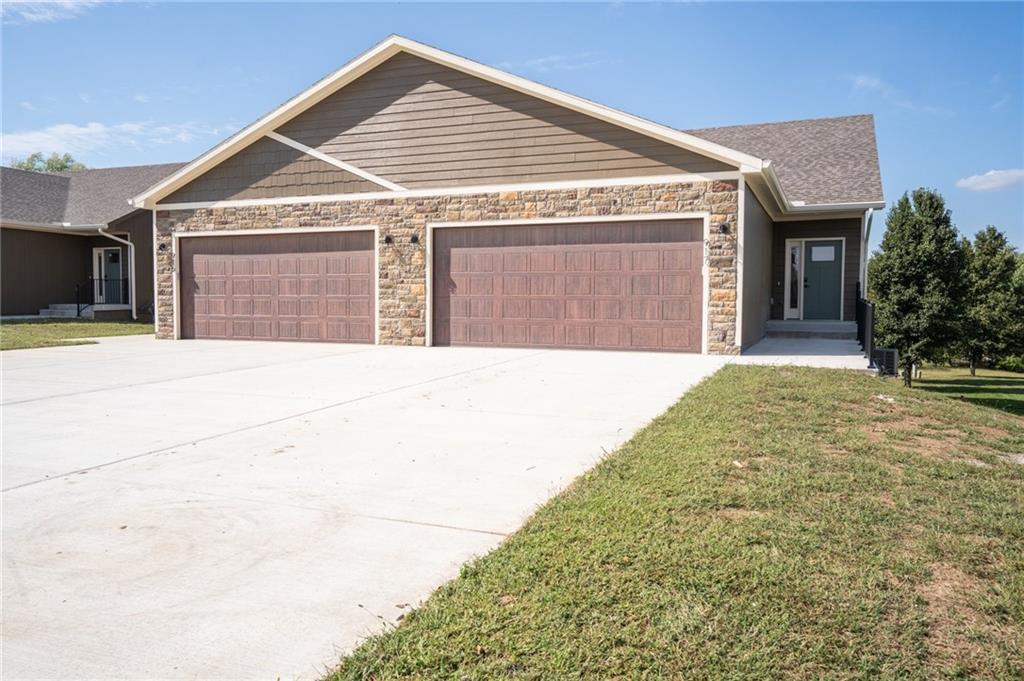 BUYER PERKS-5 year tax refund and seller paid closing costs!! New construction townhome with main level primary bedroom including double closets for plenty of storage. The stylish kitchen is designed to be highly functional, with quartz countertops, a gas range, soft-close cabinets and drawers, and a large pantry. Storage is plentiful throughout this home. The main level bathroom has a spacious, beautiful onyx shower. Downstairs, three additional bedrooms share a full bath. There's also extra living space and a spacious laundry room in the walkout basement. One of the downstairs bedrooms opens directly to a patio, providing a private spot to relax or enjoy the outdoors. LVP flooring runs through the main living areas, giving the home a modern look and durability. The neighborhood is just north of town, offering a quieter setting while keeping Highway 56, Gardner, and Lawrence within easy reach.Homeowners can also take advantage of a 5-year tax rebate by submitting proof of tax payment with the city each year.