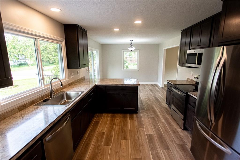 Are You Ready to move your Family into a completely remodeled 3 bedroom 2 1/2 baths home with over 3100 square feet of living space in a VERY Quiet Neighborhood? This home was taken down to the studs on the inside and everything was replaced! New sheet rock throughout, new doors throughout, new flooring throughout, new wiring and plumbing and very Good Insulation throughout for Lower Utility Bills! It has a brand-new kitchen and 2 new bathrooms! Every inch of the inside of this home is brand new and has never been lived in! Beautiful luxury vinyl plank runs throughout the HUGE Living Room and Beautiful Kitchen on the Main level. On the Sleeping Level, the Spacious master bedroom suite with brand new carpet has a new master bath with a huge walk in decorator tile shower and beautiful tile floor. The other two other bedrooms also have brand new carpet plus bedroom #3 has a walk-in closet! 2nd upstairs full bathroom has a tub shower and beautiful tile floors also! The first lower level has a bonus room and a very roomy laundry room both have plenty of natural light and luxury vinal plank floors! Head down to the basement, where there is another 1/2 bath, another bonus room plus 2 large areas for your family to enjoy game night or snuggle under the blankets and watch movies!! Like to BBQ? Brand New Decking on this HUGE Deck, just off the Kitchen and Dining Room! The very roomy 2 car garage has vents from the furnace to keep your car warm in the winter if you would like! Need room for your toys? There's a 20 by 20 insulated extra garage in the back that has a long concrete driveway, a perfect place to park a Boat or an RV!. This home Sits on a large lot and is situated in a Great area of Drexel with very expensive and beautiful homes surrounding it. Quiet Small-Town Living but easy access to Hwy 69 and Overland Park! This Home Qualifies for USDA Financing! NO PMI or Down Payment & Low Closing