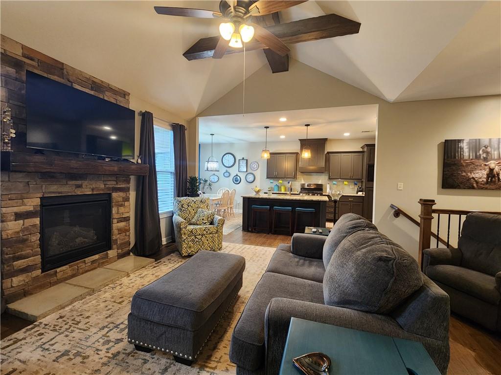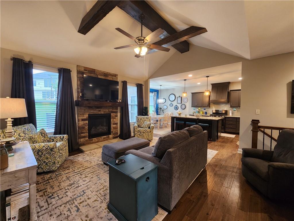 WONDERFUL Reverse Ranch home on cul-de-sac in the desired Seven Bridges Neighborhood! Walk inside this warm home & make it your own! The living room is open to the kitchen and dining areas- Great for entertaining! The living room with the vaulted ceilings, floor-to-ceiling windows, & stone fireplace makes a perfect sitting area to enjoy while overlooking the kitchen. The Kitchen is lovely with the large island, painted cabinets, gold hardware, gas stove, stainless appliances, and open to the dining area with additional floor-to-ceiling windows that walk out to the beautiful, fenced yard with sprinkler system. The MBR is conveniently located on the main floor, along with the laundry room. Bonus: make hauling groceries inside easy with just a few steps from the garage to the kitchen. The basement rec room is nicely finished with 2 additional bedrooms, full bathroom & ample storage areas that walk out to the lower patio. Not only is the home fantastic, so is the Neighborhood-- with a Community clubhouse, Party Room, Play Area, Swimming Pool, Tennis Courts, Trails & Gorgeous entrance waterfall.