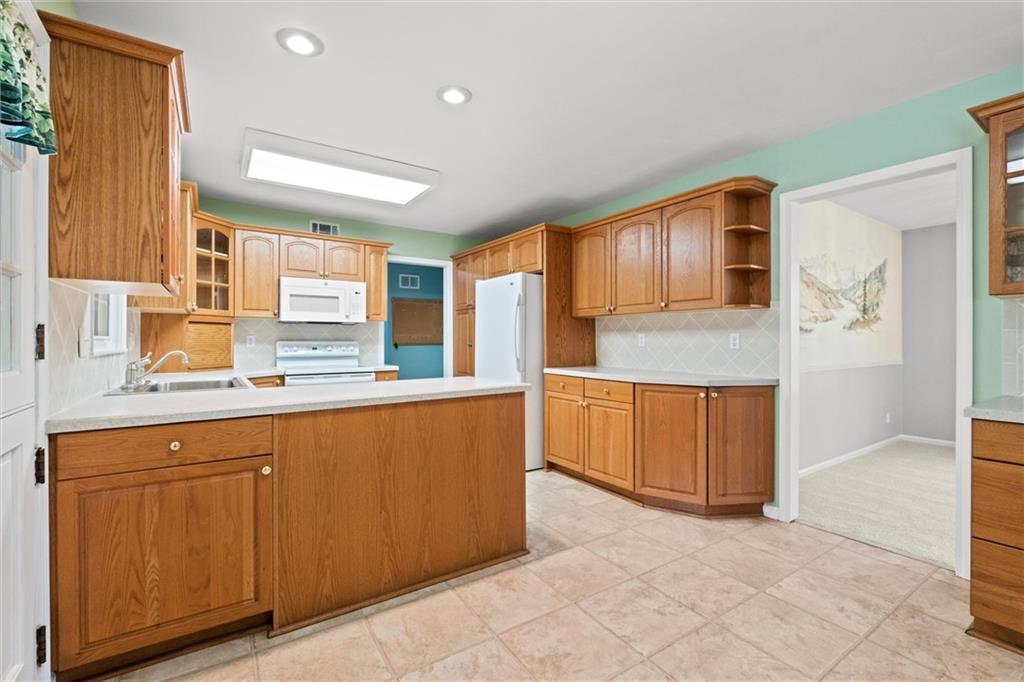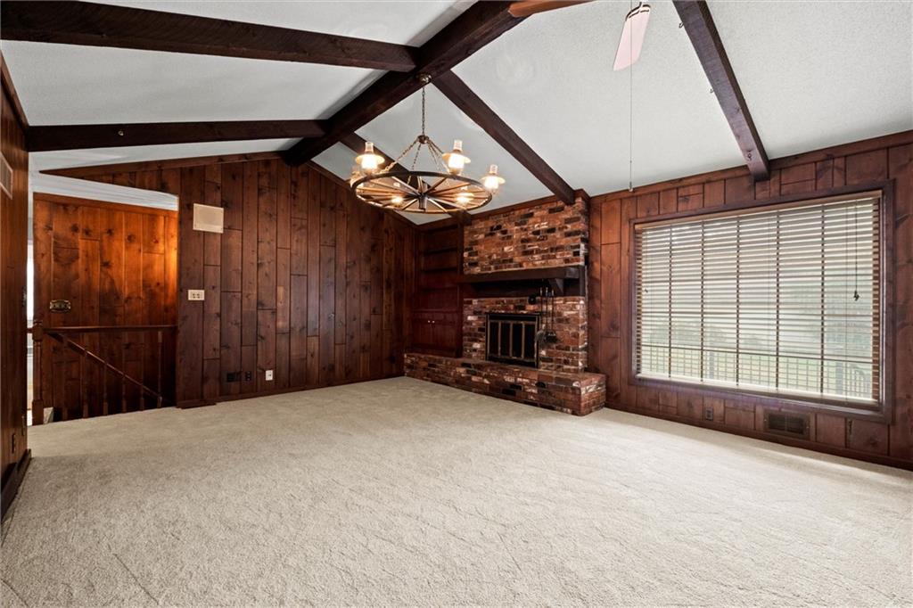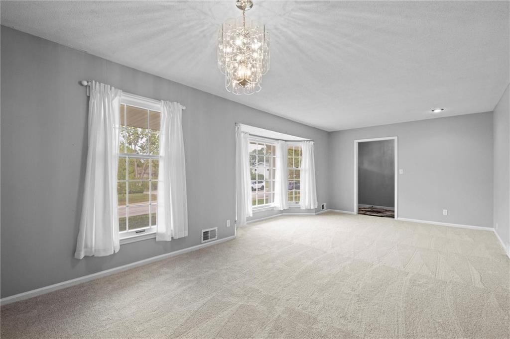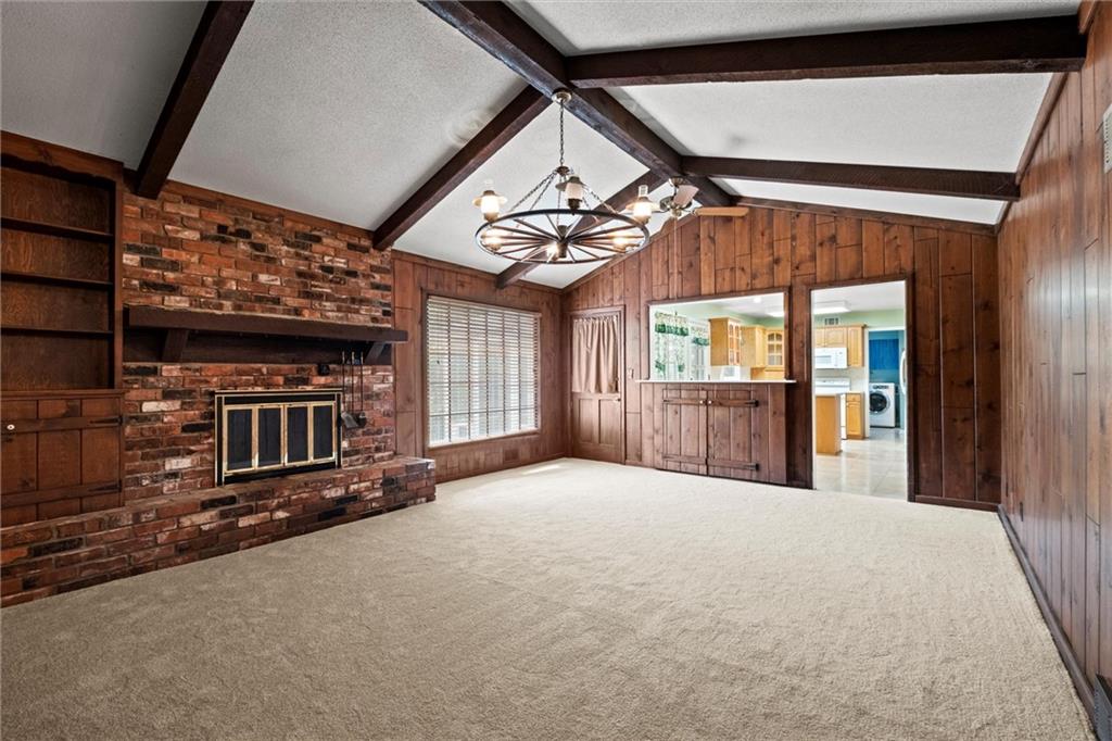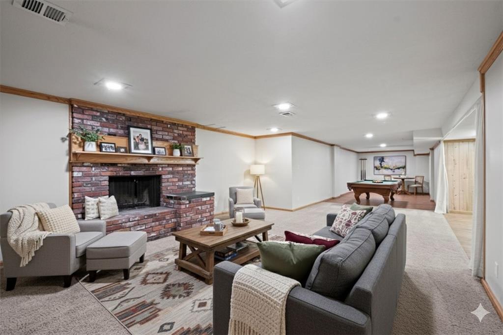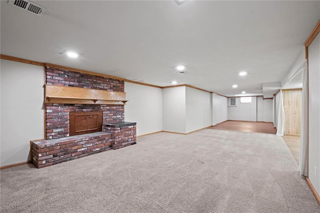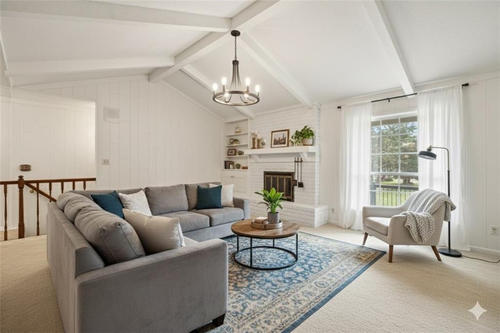 PRICE REDUCTION!! Check out the AI generated photos to show the potential!! Welcome home to this charming property offering main-level living and plenty of space to spread out! Featuring three bedrooms, two full baths, a half bath, and laundry on the main level. The formal dining and living rooms provide the perfect setting for gatherings, while the eat-in kitchen—complete with all appliances—makes meal prep a breeze. The cozy family room features a brick fireplace, built-in bookshelf, and a vaulted ceiling accented with beautiful wood beams, creating a warm and inviting atmosphere. Brand new carpet throughout the main level adds a fresh touch! Step outside to enjoy the screened porch or entertain on the composite deck overlooking the spacious, fenced .36-acre yard—ideal for kids, pets, or gardening. With a finished basement offering additional living space, game room and plenty of space for crafting or a home office. Quick access to highways, shopping, and dining, this home truly has it all—comfort, convenience, and charm in one perfect package!