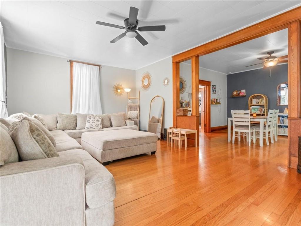 Classic charm meets everyday convenience in this inviting home filled with character. A large covered front porch welcomes you into spacious, light-filled rooms, including a comfortable living room and formal dining area. With three bedrooms, one bath, and main-floor laundry, the layout offers easy functionality. Outside, you’ll find a fenced yard and a detached garage—ideal for storage or hobby space. This property combines vintage warmth with modern comfort in a great central location.