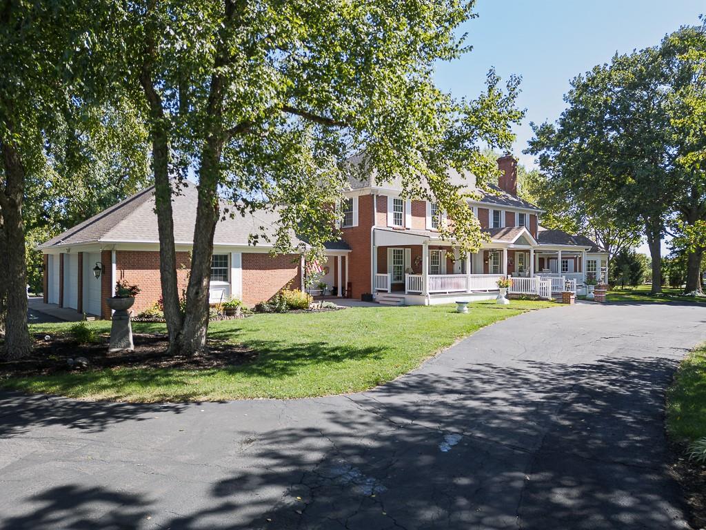 LUXURY LIVING AT ITS FINEST! This all-brick estate sits on over 2.5 acres in a secluded neighborhood within city limits, offering the perfect blend of privacy and convenience. Featuring 5 elegant bedroom suites, this home is fully custom throughout with high-end finishes and timeless design. The stunning kitchen boasts marble countertops, built-in gas cooktop, double ovens, and a bright breakfast room with skylights that flows seamlessly into the cozy hearth room. The main floor master suite includes his and her bathrooms, each with walk-in closets, creating a true private retreat. Upstairs, you’ll find four additional bedroom suites, each beautifully upgraded and thoughtfully designed. The large finished basement provides endless possibilities for entertainment or relaxation, plus abundant storage space. Step outside to your custom patio complete with an outdoor kitchen and stone fireplace, all overlooking peaceful country views. Enjoy mornings on the charming covered front porch and plenty of room for your vehicles and hobbies in the 4-car side-entry garage. This exceptional property combines luxurious living with serene surroundings—an opportunity that rarely comes along!