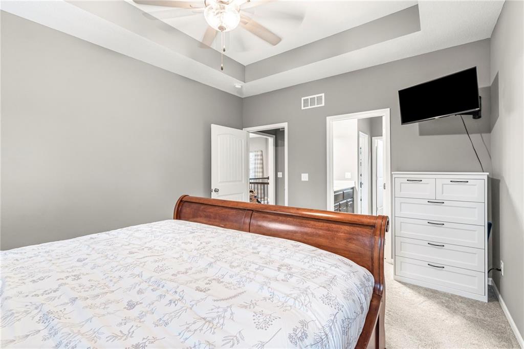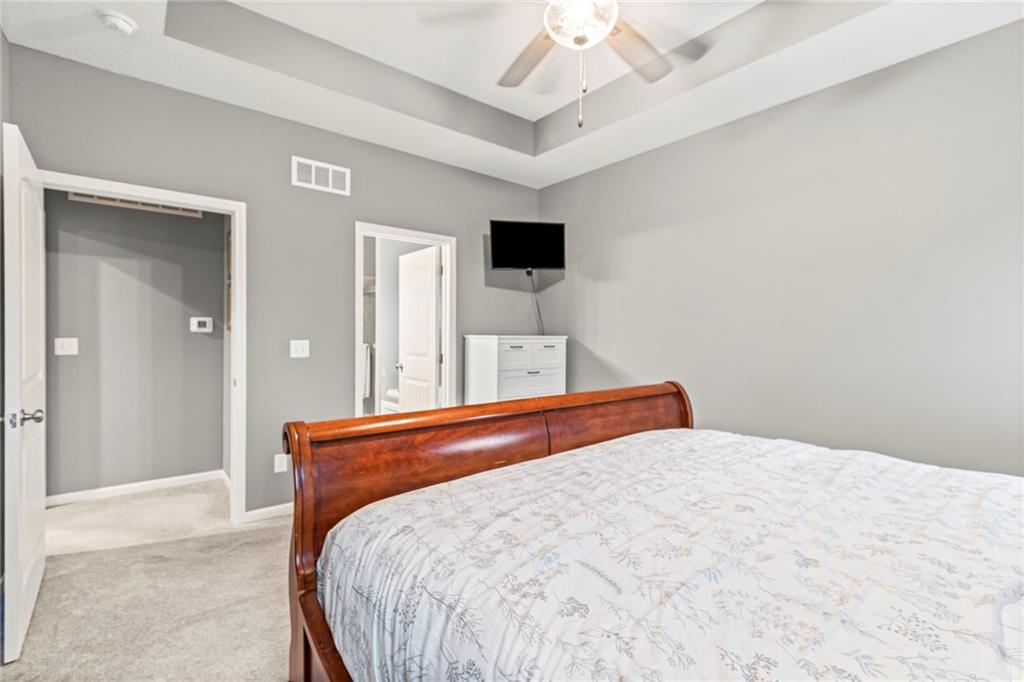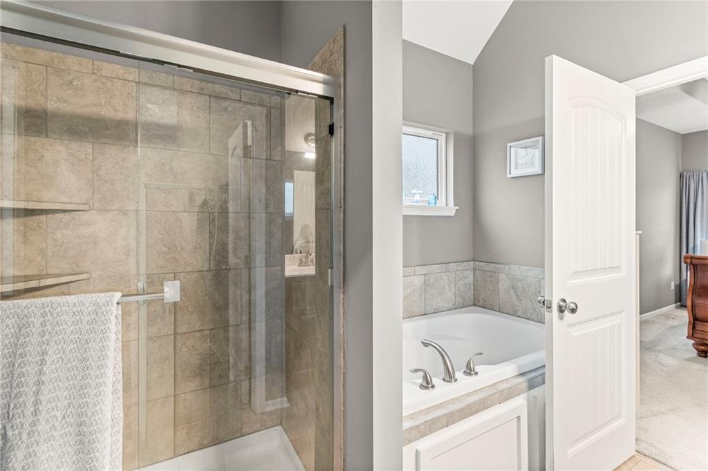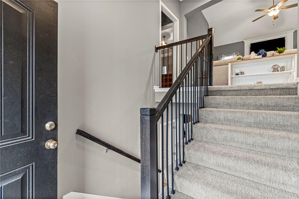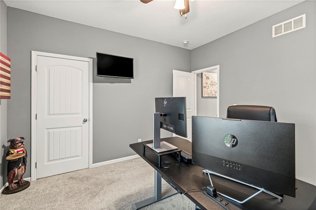 Step inside this nearly new Liberty home where thoughtful design and everyday comfort come together. The main level greets you with a spacious, light-filled living room anchored by a cozy gas fireplace and plush carpet that invites you to kick off your shoes and stay awhile. Just beyond, warm hardwood floors carry through the kitchen and dining area—an open, seamless space perfect for gatherings. The kitchen shines with quartz countertops, stainless steel appliances, ample cabinetry, and a pantry, while the conveniently located laundry room just off the kitchen keeps everything practical and within reach. The primary suite is privately tucked away, offering a peaceful retreat with a large walk-in closet and a spa-inspired bath complete with dual sinks, soaking tub, and separate shower. Two additional bedrooms and a full bath round out the main level. Downstairs, the finished lower level expands your living space with a generous family room ideal for movie nights, game days, or a cozy hangout spot. You’ll also find a fourth bedroom and third full bath—perfect for guests or a home office. Out back, unwind on the covered deck or entertain on the extended patio overlooking the beautifully maintained yard. With an oversized three-car garage and access to Clay Meadows’ neighborhood pool, this home blends small-town Liberty charm with modern style and convenience.