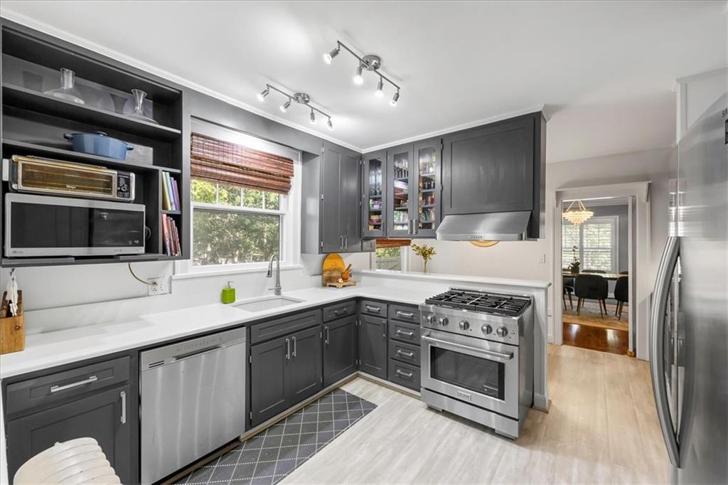 Here’s your chance to own a truly remarkable piece of Kansas City history in the coveted Rockhill neighborhood. This gorgeous three-story Colonial blends timeless elegance with modern comfort, featuring a brick-paved walkway, stately columns, and a sweeping center-hall foyer. Inside, the formal living room offers built-ins and a cozy fireplace, while the sunroom doubles as a bright family retreat. The spacious dining room easily accommodates dinner for twelve and opens to a charming side terrace. The updated kitchen boasts a gas range, display cabinetry, and an inviting breakfast room, with a nearby mudroom providing extra storage and convenient access to the attached two-car garage. Upstairs, you’ll find five spacious bedrooms, three full baths, and a versatile sitting or workout room off the primary suite. A secondary staircase connects directly to the kitchen for added ease. Outdoors, enjoy beautifully landscaped grounds with stone paver walkways, multiple patios, and an expansive second-story terrace perfect for entertaining or relaxing. Updated electrical throughout! From its curb appeal to its character, this home is a true celebration of 100 years of beauty, craftsmanship, and grace.