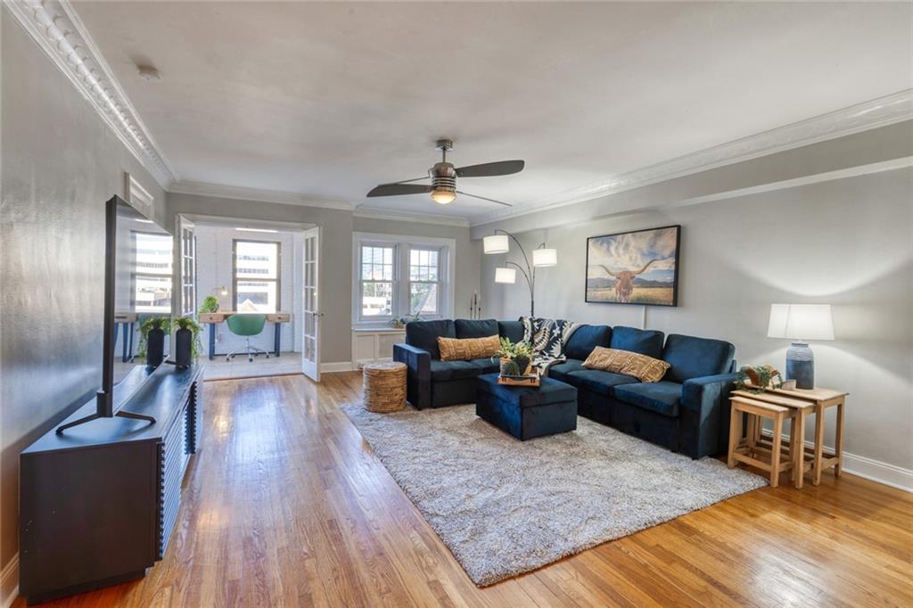 THIS BRIGHT AND SUNNY TWO BEDROOM, OPEN FLOOR PLAN IS LOCATED on the 5th floor of the iconic Eugene Fields, one of the famed buildings comprising the stately "Poet apartments" on the Country Club Plaza built between 1927 & 1929 & named after famous literary figures, in this case, the Missouri-born children's laureate. The unit looks out over a park with views of the west side of the Plaza. This unit represents an exciting & affordable opportunity to be located on the Plaza which has new ownership and one of the 2 newly planned restaurant districts on the Plaza will be a half block away from the front door. Ideal either for the first time buyer or a pied-a-terre or as an investment property. THE SELLER HAS FURNISHED THE UNIT AND BUYER CAN PURCHASE THE FURNISHINGS OR USE AS A FURNISHED APARTMENT RENTAL. This charming condo is already in a prime location with conveniences that will only get better.