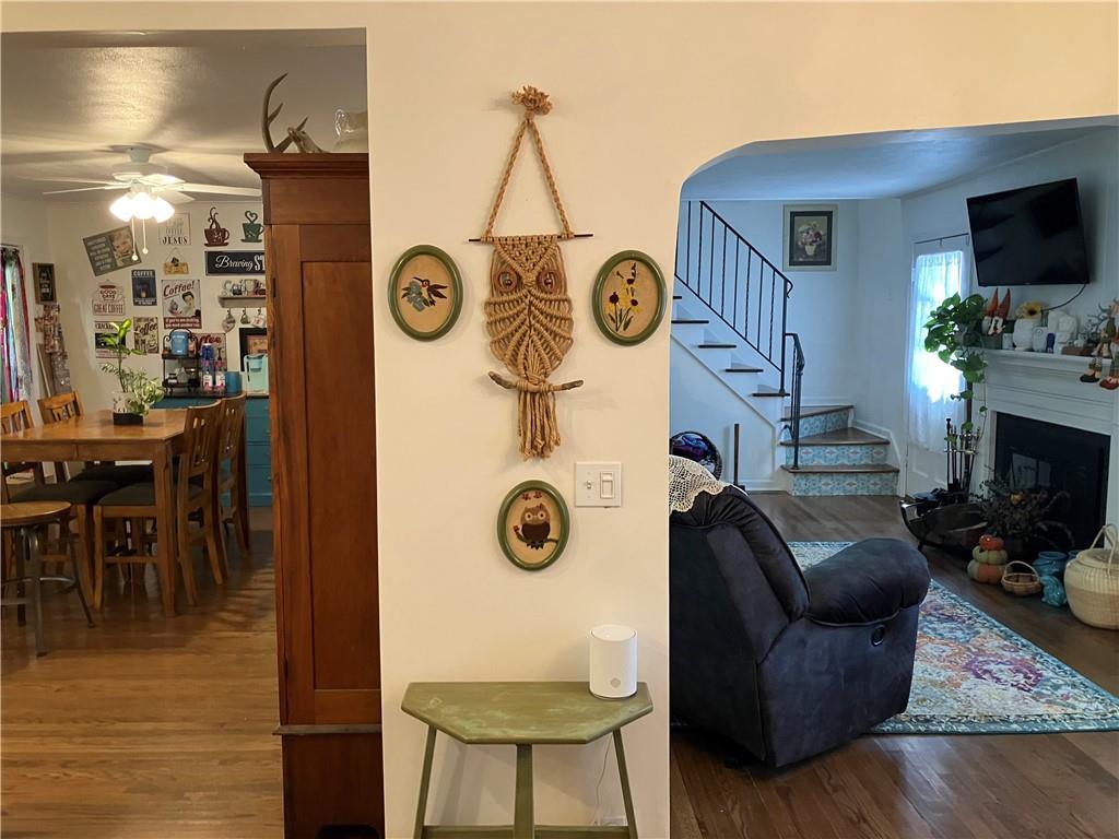 This home has so much to offer & Seller is motivated!!! Spacious interior yet feels like HOME when you walk inside. Oversized corner lot with trees to provide shade. There’s so much character and features beautiful hardwood flooring throughout the first floor. The exterior has been freshly painted and is complemented by a new white vinyl privacy fence. All visible basement plumbing has been upgraded to durable PVC. The home offers two bedrooms on the main level and two additional bedrooms upstairs, plus a cozy sitting room. The kitchen features granite countertops, and all kitchen appliances stay. Cozy up by the wood burning fireplace. A main-floor family room provides additional living space. The walk-up basement offers easy access, and the backyard includes a shed, hot tub, and covered deck—perfect for relaxing or entertaining. Easy to show!
