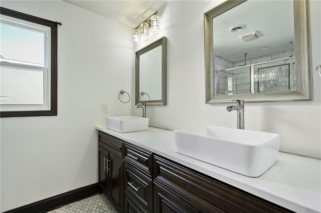 Better than new Construction! Lake views! Character! True ranch 3/2 on main level. 4th nonconforming bathroom w/ private en suite in lower level. Well lit, tall floor to ceiling windows w/ views of the lake from kitchen, dining, and living room! Kitchen quartz island. Big fenced level backyard for all kinds of activities. HVAC zoned! Kitchen walks out to adorable courtyard. Primary bedroom walks out to backyard. All right next to the private lake you have access to.