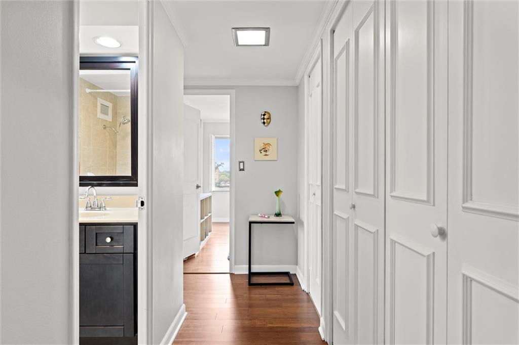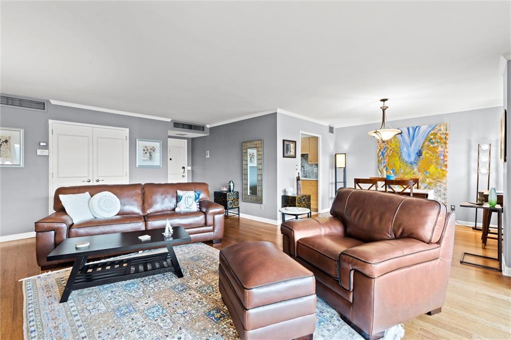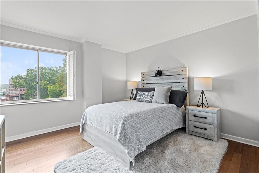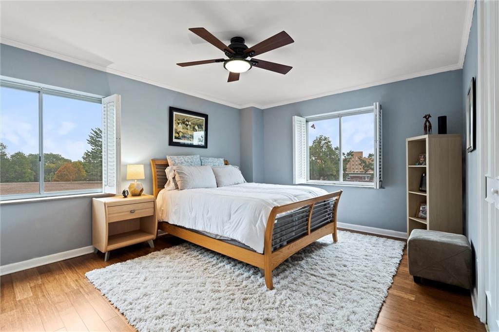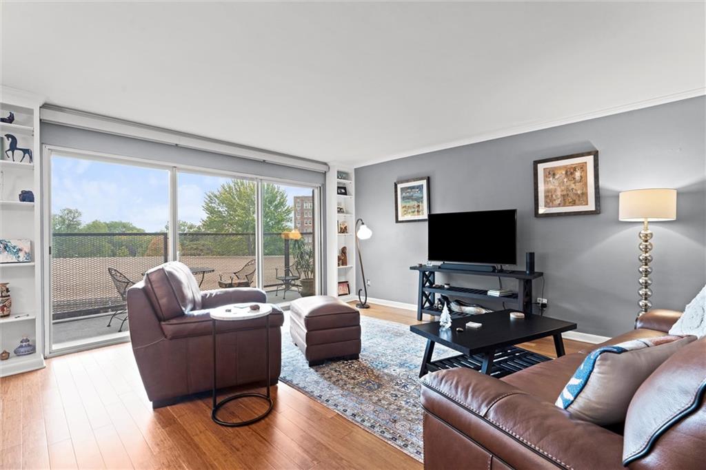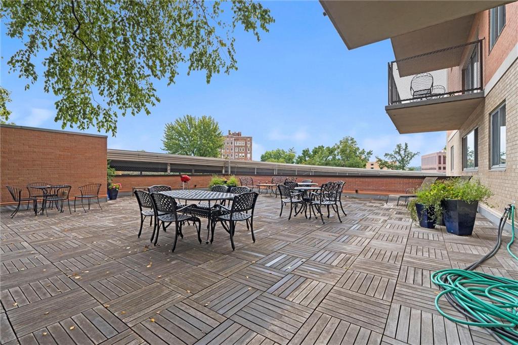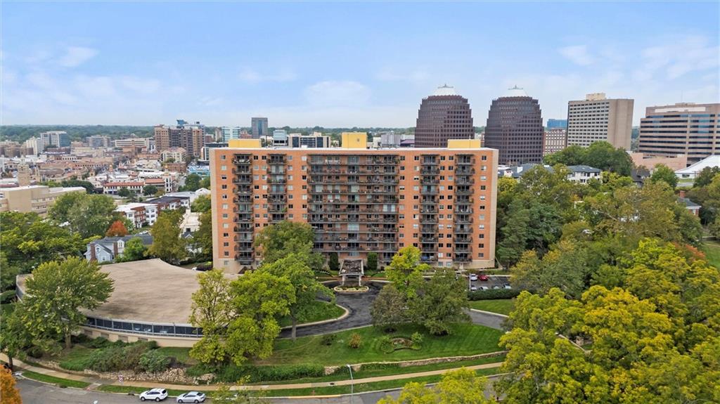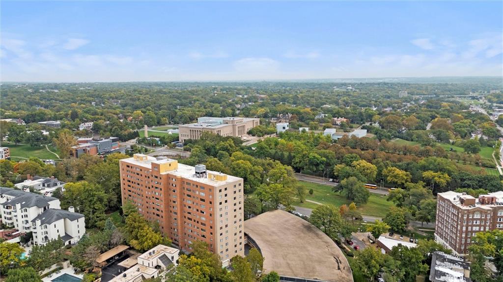 Everything you are looking for, including a fantastic price, at this 2 bedroom w/ covered balcony unit at Oak Hall condominiums! Nestled between the Plaza and Nelson-Atkins Museum, and direct view of Southmoreland Park. Move-in ready, so just in time to walk or hop on the street car (one block to the west), to enjoy all the upcoming holiday entertainment this fabulous area has to offer. Numerous upgrades over the past 5 years; kitchen renovation, bamboo flooring throughout, primary suite bathroom remodel, electronic shades and plantation shutters, all new plumbing stacks throughout the building, new building "chiller" system. Convenient building amenities including loading dock, furnished rental units for guests, secure parking, media room w/ kitchenette, laundry room, and exercise facilities. Oak Hall also offers 24/7 door and security services, daily trash pick up from unit hallway, maintenance changes furnace filters and smoke detector batteries