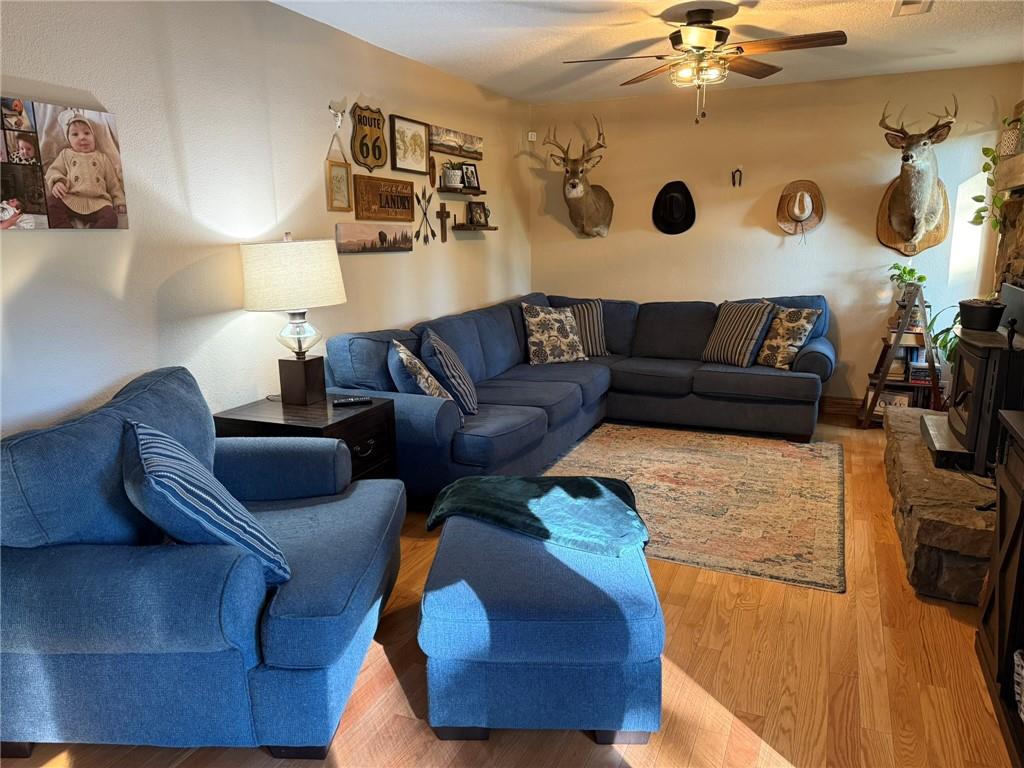 Beautiful cabin-style berm home on 5 acres near Carthage, offering privacy and mature trees. Upgrades include newer Pella windows, roof (2020), guttering, tankless water heater, water softener, whole house filtration with reverse osmosis, and HVAC (2022). Kitchen features exposed beams, island, updated sink, and appliances (2020). Layout includes 2–3 bedrooms (loft optional), 2 baths, large deck with scenic views. Fireplace insert replaced (2022). Property also has a 16x20 shop (2023) with awning and electric meter (2024), wood shed (2024), and 50m shooting range. Tree Stand available and ready to use! Washer/dryer can convey; TV wall mounts stay. Fiber Internet: CWEP. Refrigerator excluded.