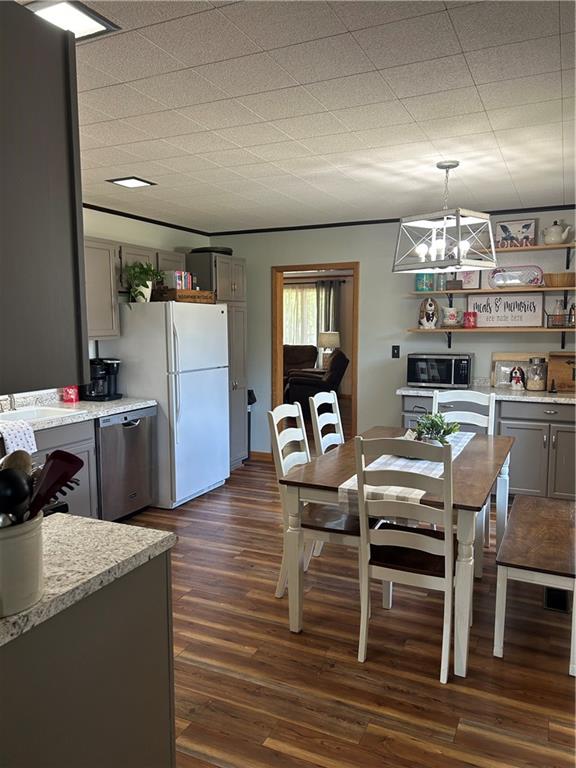 Charming 3 bed, 2 bath home on a spacious corner lot, perfectly located between Coffeyville and Independence. This move-in ready home combines comfort, updates, and small-town living. Inside, you’ll find a bright kitchen with included appliances, plus a flexible third bedroom with en-suite bath and closet system that is currently staged as a cozy second living area. Add a door and it easily converts into a primary bedroom, home office, or guest suite. Updates include new floor joists and sub-flooring (2020 & 2025), roof (2013), gutters (2020), and central heat & air (2014). Outside, enjoy a privacy-fenced backyard with a metal pergola on a concrete pad perfect for relaxing or entertaining. Additional features include a detached single-car garage with work area, an extra storage building with electricity, a carport with concrete pad, a mature shade tree, and a producing blackberry bush. A thoughtfully updated home with plenty of space inside and out, ready for you to move in and enjoy small-town living.