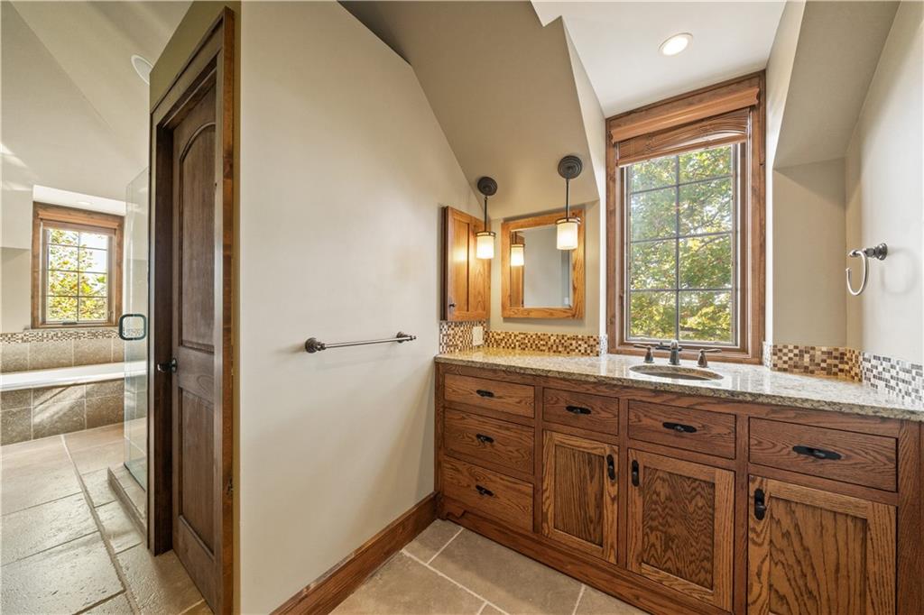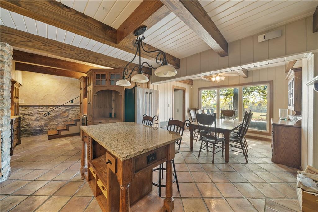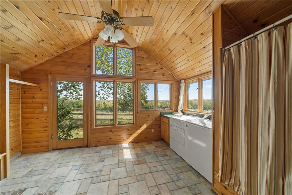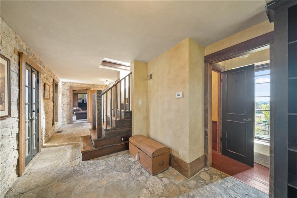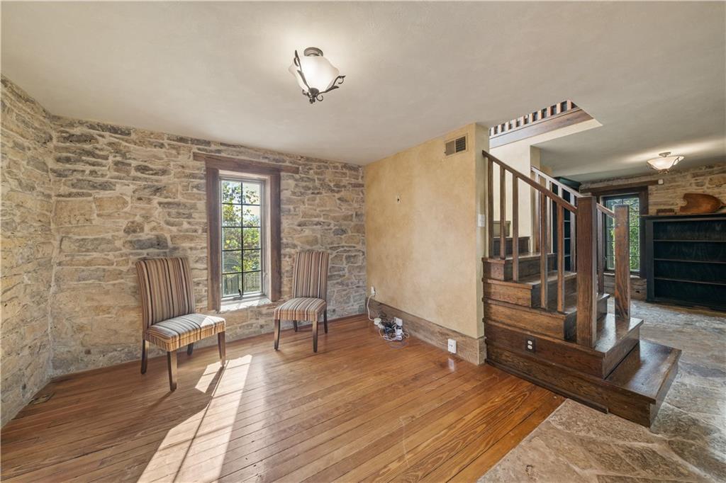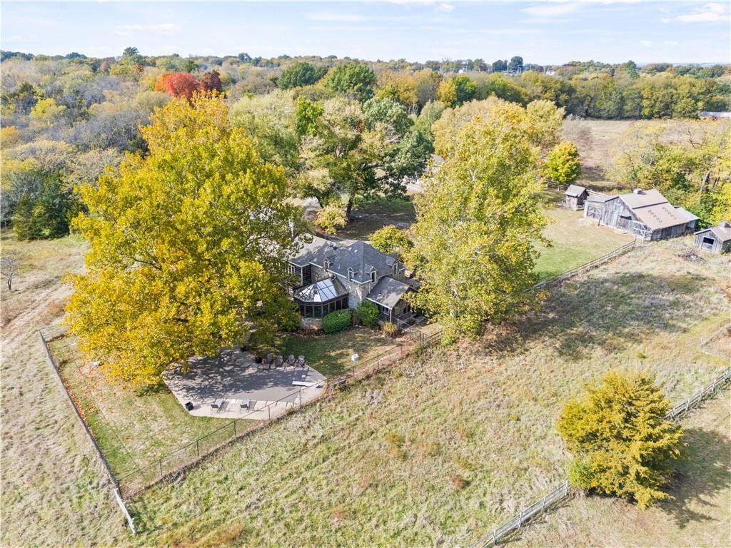 This is a property that comes along once in a lifetime, ownership of the “Elias Garrett house.” A beautiful homestead on 30.47 acres which includes a beautiful home, barn, horse barn, two car garage with guest quarters on a gated estate. Located hidden in the hills overlooking Shawnee Mission Park minutes away from all conveniences and schools. Well built and maintained stone home that includes all your modern updates and improvements. Updated chef’s kitchen with high end cabinets, wine cooler, granite topped island, granite counter tops and Jenn Air Appliances. Newer roof, sunroom and inground pool. All additions that have been added have used the same stone as original construction. Master suite updated with sound system, walk-in closet, bathroom with double vanity, shower, bathtub and heated floor tiles. Two HVAC systems, fireplace, wood burning stove will keep you cool in the summer and warm in the winter. A Generac generator will keep everything running smoothly if that rare outage happens. Large laundry room that even includes a shower/bath area for Fido. The two-car garage has a very comfortable guest quarters which includes a full bathroom with shower. Wildlife abounds, with frequent sightings of whitetail deer and turkeys. This property is zoned as AG (Agricultural) so bring those animals and gardening ideas. Horse barn includes a separate fenced area to allow horses to move freely. Water hydrants are located in multiply locations to use to wash off that equipment or water the animals as well as having a 23 zone sprinkler system installed surrounding the property. Enjoy that first cup of coffee sitting in the Sunroom as the deer wonder the valley in front of you or getting a drink from the aerated pond. For that outdoorsman two high end gun safes will remain with the property.This property includes a residential alarm and surveillance camera system with 24 hour monitoring.