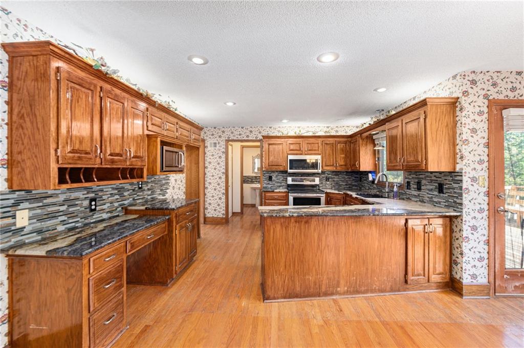 Welcome to this spacious 2-story home with a 3-car garage and a finished walkout basement, perfectly situated in the sought-after Winsboro subdivision. Enter the home via the custom-built paver stone landing and steps with inviting patio. The main level features a generous eat-in kitchen with granite countertops, formal dining room, a spacious living room with a fireplace and built-in bookshelves, as well as convenient 1st floor laundry room. Upstairs you'll find 4 bedrooms including a stunning primary suite with a sitting room, luxurious bathroom with a jacuzzi tub, and an impressive walk-in closet measuring 20 ft long by 5.5 ft wide. The lower level offers a full 2nd living space with a full kitchen, living room, bedroom, and full bath - ideal for guests, extended family, or entertaining. Step out from the walkout basement to a peaceful patio overlooking beautiful green space or relax on the roomy deck accessed from the upstairs kitchen. Neighborhood amenities include a pool, pond, and common areas--all maintained by the HOA, which also provides trash service. This home truly offers space, comfort, and an exceptional lifestyle in one of the area's most desirable communities.