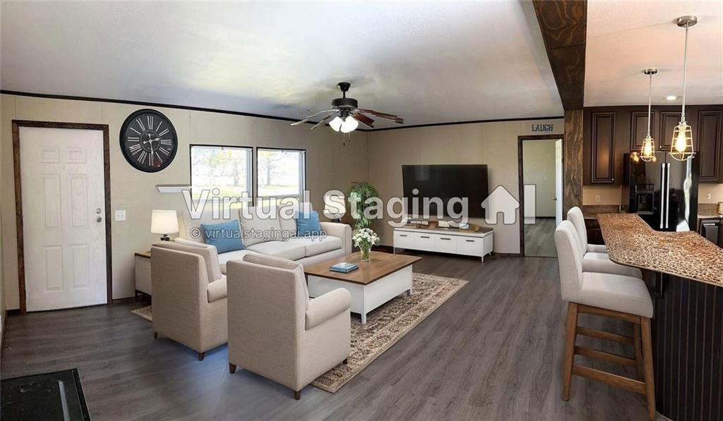 This beautiful, custom built, 4 bedroom home sits on a lush 1/2 acre corner lot. It's the perfect location to enjoy the historically lower taxes & lower fuel prices of MO, while yet being just minutes from KS with easy access to Hwy 54. The peaceful town of Deerfield is well known to provide a slower paced lifestyle with friendly neighbors. According to the Down Payment Resource article on 8/26/25, it's reported that rising numbers of manufactured homes, such as this beautifully built home, as being "more affordable, efficient & better quality" than many other site built options. "The reason is that they are built indoors under controlled conditions, offering greater consistency, durability and compliance with HUD safety and energy standards than ever before." Additionally, "they are more affordable than a site built home, which is perfect for the budget conscious buyer." See the many custom features of this well maintained, country inspired, home! The open floor design allows for great natural lighting from the large thermal windows of the living & dining room. The oversized kitchen is a cooks dream, a spacious kitchen island with bar seating, updated flooring throughout & a fantastic sliding glass door located off the dining area which leads out to a comfortable deck used for entertaining & relaxing after a long day. Each bedroom offers walk in closets & storage options throughout. The smart thermostat is a fantastic modern feature when traveling for extended periods. The master bedroom is easily called a sanctuary, as it allows for large furniture, the walk in closet is unbelievable in size & the attached master bath provides a soaking tub, double vanity, separate shower & a space galore! A 23x30 attached garage with concrete floor, a hunting de-scent closet & workshop space is perfect on wet weather days. An additional detached storage building is perfect for hobbies, a chicken house, or whatever your heart desires. This is a must see!