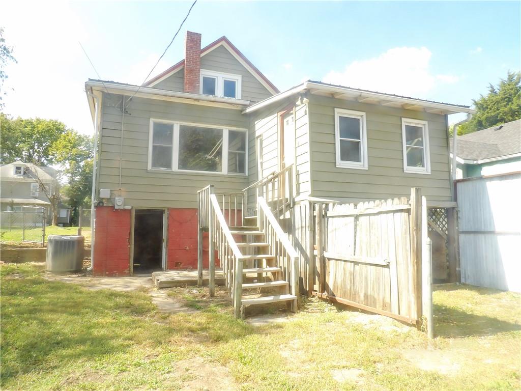 older 1/2 story bungalow home with1176 sq. ft. Glass French doors from entryway to living room. Open archway between living and dining area. 2 bedrooms upstairs. 1 non-conforming bedroom in basement. 1 and 1/2 bathrooms. Large front porch with porch swing. Privacy fenced back yard. Driveway off of alley.
