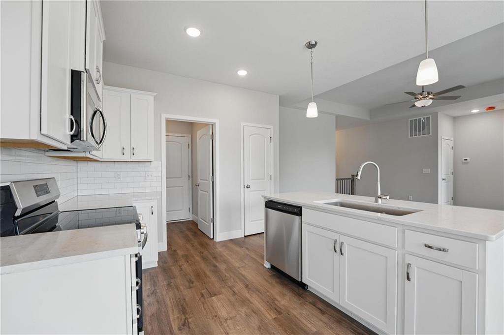 GORGEOUS TREED LOT! Welcome to the Kinley — a beautifully crafted 3-bedroom, 2-bath home nestled on a scenic, wooded lot. This thoughtfully designed floor plan offers both comfort and flexibility, featuring a spacious 3-car garage and a full walkout basement, perfect for storage, recreation, or future finish. At the heart of the home is an inviting open-concept layout connecting the kitchen, living, and dining areas—ideal for everyday living and entertaining. The kitchen features sleek quartz countertops, stainless steel appliances, and a large island, blending modern design with everyday functionality. Enjoy peaceful wooded views, the potential of a finished lower level with walkout access, and the perfect combination of nature, space, and style. HOME IS UNDER CONSTRUCTION. PHOTOS ARE SIMULATED.