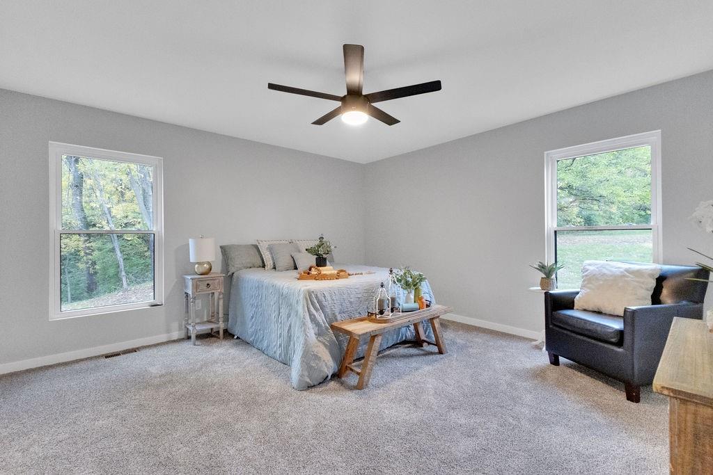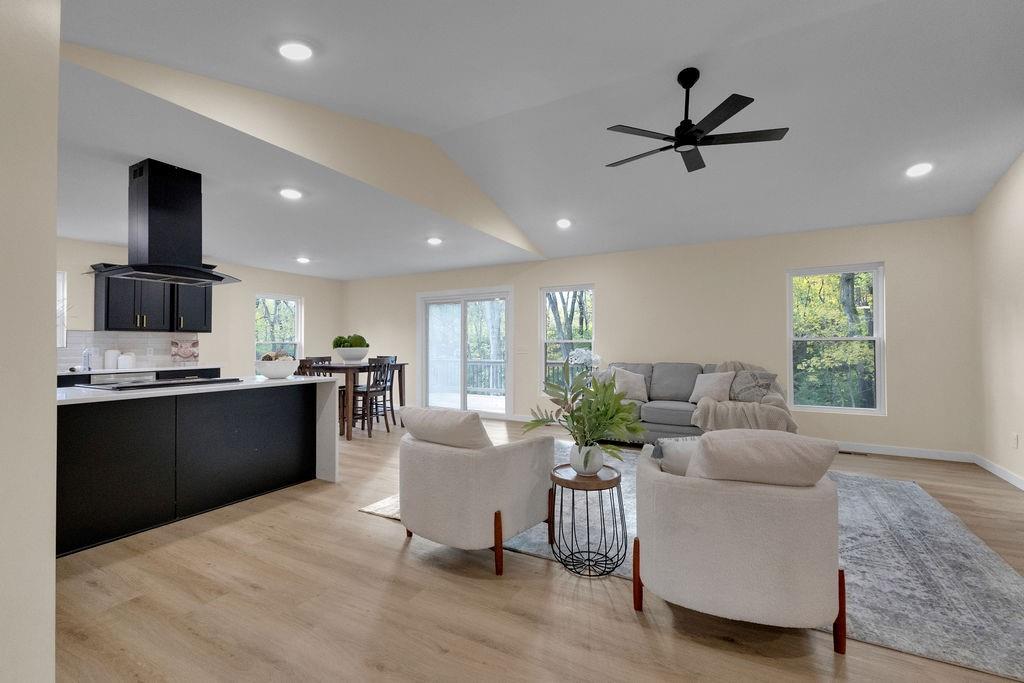 Brand New Modern Luxury Home in a Peaceful, Treed Setting Discover contemporary elegance in this stunning new construction home, nestled in a quiet, tree-lined location. Thoughtfully designed with modern luxury finishes throughout, this residence offers 4 spacious bedrooms and 3 beautifully appointed bathrooms. The heart of the home features an open-concept living area with a gourmet kitchen showcasing quartz countertops, a waterfall island, and premium cabinetry. Plus, a large pantry with shelving and more cabinetry. Enjoy seamless indoor-outdoor living with a large deck off the living room, perfect for relaxing or entertaining while taking in the serene views. High-end details include wide-plank luxury vinyl flooring and cozy carpet on the main level, and a stunning metallic epoxy floor in the finished basement. Wet bar with plenty of cabinet space, quartz counter and a wine fridge add to the already amazing basement recreation room. The media wall upstairs and dedicated theatre room downstairs create ideal spaces for entertainment and family gatherings. The exterior impresses with LP Smart Siding, stone accents, and soffit lighting that highlights the home’s modern curb appeal. Every inch of this home has been crafted for style, comfort, and functionality. There is also a 1 year home warranty offering even more peace of mind to this Brand-New Home! Conveniently located only 7 minutes from the North Shoppes.