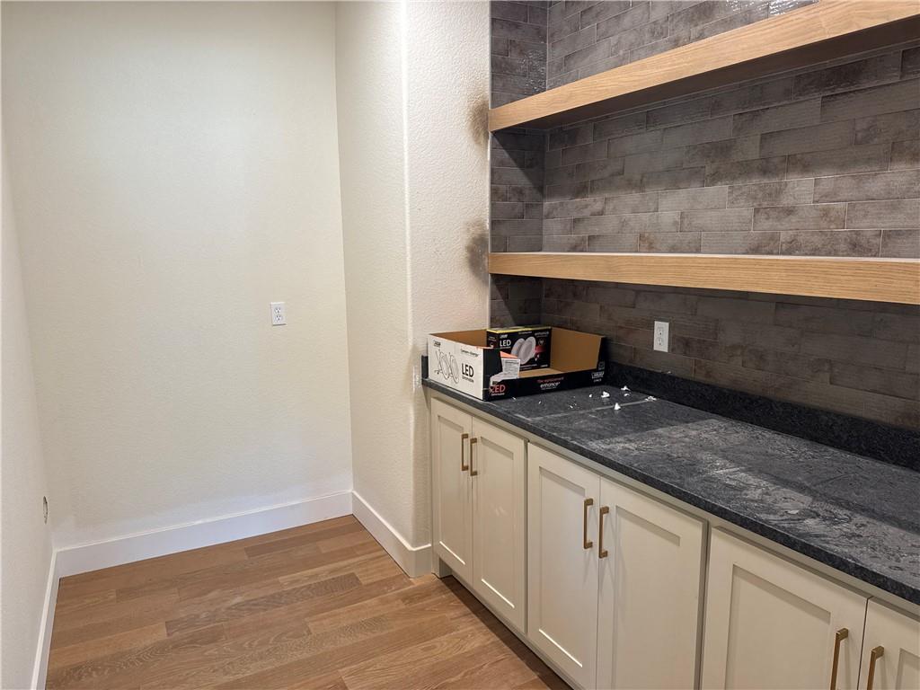 The Woodland — an exquisite reverse 1.5-story home that perfectly blends timeless craftsmanship with modern elegance. Ideally situated on a beautiful corner lot, this home offers extra space, curb appeal, and an abundance of natural light throughout. From the moment you step inside, you’re welcomed by an open-concept layout centered around a striking floor-to-ceiling fireplace — a stunning focal point for gatherings large or small. The gourmet kitchen impresses with an expansive island, oversized prep pantry, and designer finishes that make both everyday living and entertaining effortless. The main level features two bedrooms and two full baths, including a serene primary suite with hardwood floors, private access to the covered deck, and a spa-inspired bath complete with a freestanding tub, walk-in tiled shower, and dual quartz vanities. The spacious primary closet connects conveniently to the laundry room, finished with custom cabinetry and stone countertops. The finished lower level provides the perfect retreat — complete with a generous rec room and wet bar ready for a full-size refrigerator, a private guest suite, and two additional bedrooms sharing a stylish full bath. With 5 bedrooms, 4 baths, and elegant finishes throughout, The Woodland offers the ideal balance of beauty, comfort, and functionality — all nestled on a desirable corner lot that enhances its charm and livability.