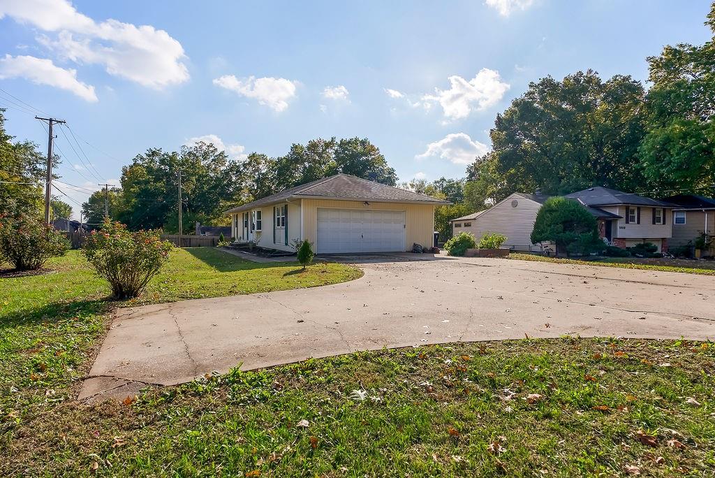 This well-maintained ranch offers classic charm and practical updates on a spacious corner lot. Step inside to find a light-filled living area and a cozy kitchen with warm wood paneling, stainless steel appliances, and durable vinyl plank flooring. The main level features beautiful hardwood floors throughout the bedrooms and hallway, while the large unfinished basement provides tons of storage or future expansion potential. Enjoy a two-car attached garage plus an additional detached garage—perfect for a workshop or extra storage. Recent improvements include a newer roof and updated mechanicals, giving peace of mind for years to come. Conveniently located near shopping, restaurants, and major highways, this home offers easy access to everything Kansas City has to offer. Whether you’re a first-time buyer, investor, or simply looking to downsize, this property combines value, function, and potential in one inviting package.