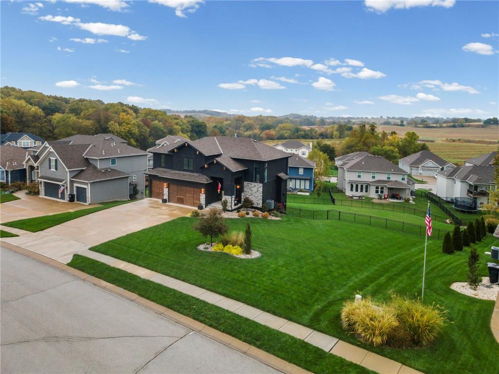 Welcome to this stunning modern home in the coveted community of Seven Bridges. Set on nearly a HALF-ACRE, one of the LARGEST LOTS in the neighborhood, this property seamlessly blends timeless design with everyday comfort. The newly painted exterior showcases dark stucco, warm wood garage doors, and stone accents that create instant curb appeal. Inside, wood floors flow throughout an open-concept layout filled with natural light from oversized windows. The kitchen, with its large quartz island, elegant gray arabesque backsplash, and walk-in pantry, opens to a cozy family room and covered deck. The adjoining patio, connected by the walkout basement, creates a seamless indoor-outdoor flow. Step outside to a giant backyard with fresh landscaping, full fencing, and a sprinkler system. The yard transitions beautifully from the neighborhood’s gentle landscape into wide-open green space beyond, making every sunset view unforgettable. This home includes abundant storage closets, a practical mudroom with a built-in desk, and a deep utility sink in the laundry room. The primary suite feels like a private retreat with an oversized walk-in closet that connects directly to the laundry room. The spa-style bath features double vanities, a freestanding tub, a dual-head tile shower, and an elegant cascading chandelier. The walkout basement has large windows that bring in natural light and endless potential to finish your way. This fall, picture family nights by the fire, weekend games in the yard, and quiet mornings on the porch with coffee and sunrise views. Seven Bridges offers resort-style amenities including pools, tennis and basketball courts, a clubhouse, playground, and scenic walking paths for community living at its best.