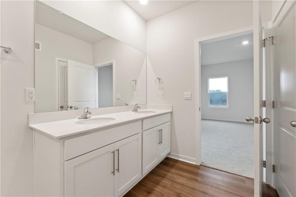Welcome to Prairie Trace, where modern design meets timeless elegance in this exceptional home crafted by D.R. Horton, “America’s Builder.” This home stands out with James Hardie® siding and stone and shake shingle accents, providing both durability and timeless curb appeal. You'll be greeted with a three-rail, two-panel insulated front door that enhances both curb appeal and energy efficiency. Step inside to find a beautifully appointed interior with 9-foot ceilings that exude sophistication. The chef’s kitchen is the heart of the home, featuring 36-inch painted maple cabinets, quartz countertops, and state-of-the-art Whirlpool® stainless steel appliances. Bathrooms feature quartz-topped vanities and Moen® chrome faucets. The primary bath offers a 5-foot shower with a framed glass enclosure. This home is designed for the future with advanced Smart Home technology, including a Honeywell® Pro Z-Wave® Thermostat, Amazon Echo, and a connected home panel, allowing you to control and monitor your home from anywhere. Energy efficiency is prioritized with LED lighting throughout, a high-efficiency gas furnace, and insulated low E vinyl windows, ensuring comfort and savings year-round. Additional features such as luxury vinyl plank flooring, a spacious garage with opener(s), and detailed wiring solutions like dual data/TV lines in the main bedroom and family room, enhance both convenience and style. D.R. Horton’s commitment to quality is evident in every aspect of this home, offering you a place where luxury, technology, and comfort come together seamlessly. Don’t miss your chance to own this extraordinary home in Prairie Trace. Schedule your private tour today and experience the D.R. Horton difference!