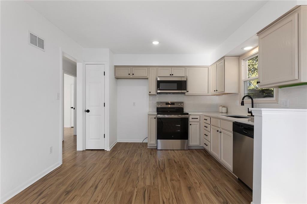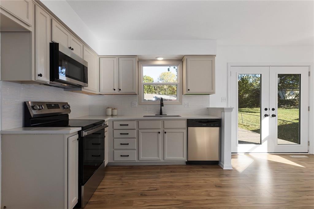 Back On Market, No Fault To Seller....Seller has completed repairs on key items identified from a recent inspection, providing added assurance for future buyers! Welcome to this charming 4-bedroom, 2-bathroom home nestled in the heart of Blue Springs—just minutes from top-rated schools, scenic parks, and quick highway access! Step inside to discover a fully remodeled interior featuring a stunning updated kitchen with stainless steel appliances, modern light fixtures, fresh paint, and stylish new flooring throughout. Both bathrooms have been beautifully refreshed with contemporary finishes, giving the entire home a clean and inviting feel. Enjoy your morning coffee or evening gatherings on the oversized deck in the spacious, fenced backyard surrounded by mature trees, offering privacy and a touch of nature right at home. With its modern updates, newer AC, energy efficient windows, unbeatable location, and move-in ready condition, this home truly has it all!