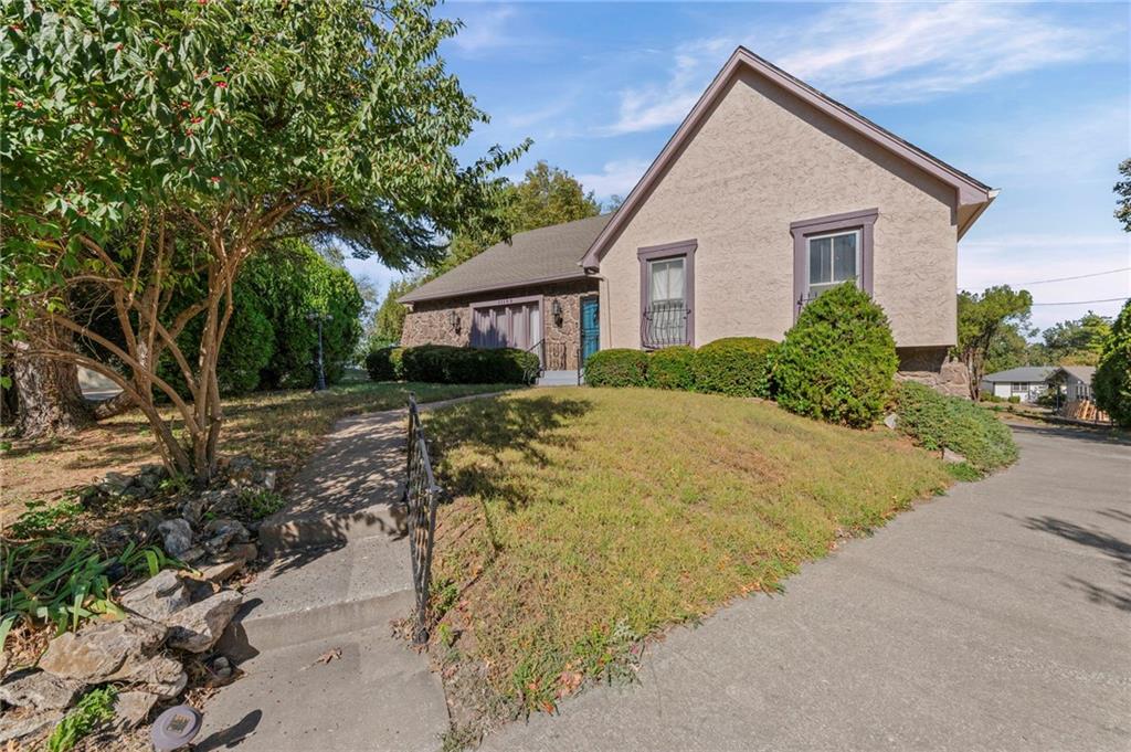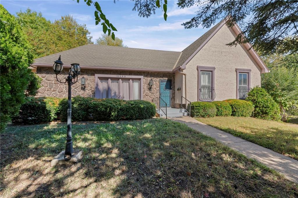 A rare gem in Terrace Manor you don’t want to miss! Situated on a quiet cul-de-sac, this darling home boasts gorgeous storybook-like stucco and stone facade. Extended driveway and large concrete patio on the side and rear of the home provides plenty of parking space for your family and guests. Large fenced backyard gives your family lots of space to relax and entertain. Inside the home, you are greeted with soaring vaulted ceiling and gleaming wood flooring. Music room between living room and kitchen can also be used as dining or kids play area. Large white kitchen boasts s/s appliances, double ovens, pantry, and ample cabinetry. Gather around the cozy fireplace on those cold winter nights in the spacious French country style hearth / family / dining room and create lasting memories for many years to come. Main level also features 3 cozy bedrooms and 2 full baths. Finished lower level offers a rec/family room with wet bar, and two bonus rooms that can be used for guests or as home office. You will also find laundry facility and storage space on this level. The 2-car garage is separated by wall and can be used individually. Other upgrades and features include new exterior paint, 4-year-old water heater, new master shower wall tiles, new tiled fireplace, new sump pump and water proofing system. This home's central and convenient south KC location allows for fast access to highways and easy commute to all major areas of the metro, minutes to Grandview, Lee's Summit, and Leawood. 15 minutes drive to South Overland Park, and 20 minutes drive to downtown KC/Plaza area. This home is a must see!
