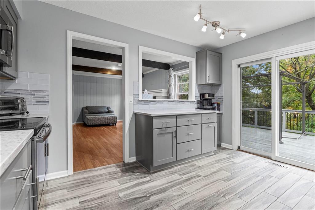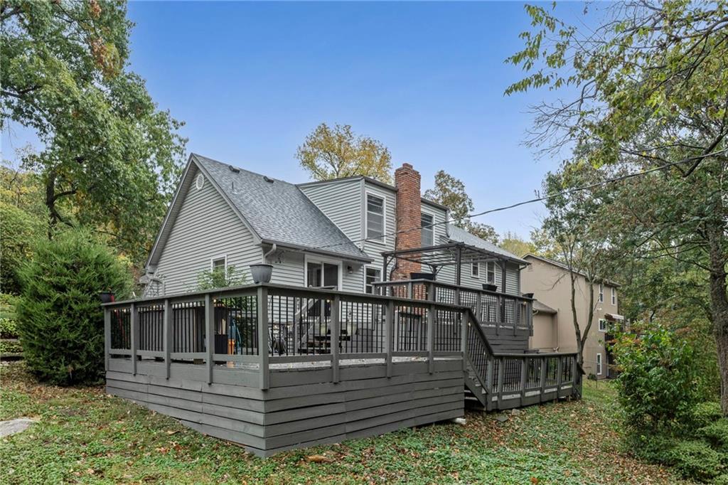 Lots of updates have been done to this 4 bed 2.5 bath split level home in much desired Quivira Highlands. Enjoy sitting on the multi tiered deck that backs up to treed area. This back yard offers lots of privacy. Fresh paint through out. Updated flooring, baths, and kitchen are some the the updates that have been done. New roof, and water heater within the last year, HVAC is on 4 years old. Finished basement with bar area would be great for entertaining! Formal living and dining as you enter the house with a large family room with cozy brick fireplace that is open to the kitchen. A great house in a great neighborhood, ready to move into!