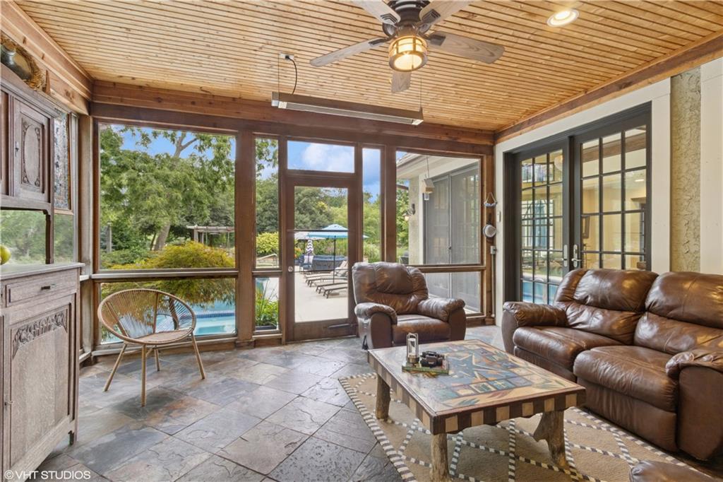 Perched above the pond at Loose Park, 239 W 52nd Street offers one of Kansas City’s most iconic and picturesque settings—where front-row views of the water, winding paths, and daily sunsets create a lifestyle unlike any other. Originally built in 1915 and expanded in 2011, this stately three-story residence blends timeless architecture with thoughtfully designed living spaces. This offering includes both the home and the adjoining lot—sold together as one extraordinary property. Inside, you’ll find six bedrooms, four and a half baths, zoned HVAC, and a rare three-car basement garage. The expansive kitchen and family room open to a resort-style outdoor retreat featuring a gunite pool, hot tub, built-in outdoor kitchen, and beautifully maintained gardens with dedicated herb and vegetable beds. The third floor includes a vaulted theater/family room, two bedrooms, and a full bath. A hidden bonus room with rustic décor and a working Buck stove—accessed via secret bookcase door or spiral staircase from the primary suite—offers a cozy, one-of-a-kind escape. Two heated patios extend the seasons: one overlooking Loose Park’s pond, the other bordering a privately owned neighborhood ball field—a beloved local landmark included with the sale. This field, recently separated by lot split, continues to host community wiffleball games and adds to the property’s unique charm. Located just minutes from the Country Club Plaza, this exceptional estate combines historic character, modern comfort, and unmatched surroundings in one of Kansas City’s most sought-after neighborhoods. Sale includes both the residence and the adjoining lot.