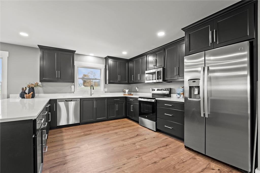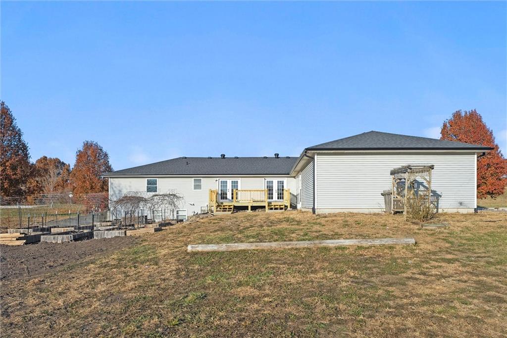 YOU COULD BE HOME FOR THE HOLIDAYS!! This Beautifully Remodeled 3000+ sq foot Ranch Home, an Updated 30 X 60 Shop with a Stocked Pond on more than 10 Acres in JOHNSON COUNTY could be yours!! This location has it all. This country home offers the perfect blend of peaceful scenic living with the convenience of nearby city amenities. All new flooring, the new soft close cabinets throughout the entire home and the spa like primary bath! All new one year SS appliances and composite roof! Welcoming and warm this home has three additional oversized secondary bedrooms for your growing family. A brand new deck overlooks your open spaces. Sunroom for growing seedlings during cooler months and a full raised garden area just out your back doors! The shop has new 6 inch concrete floors for heavy equipment, all new electricity and lights, and 2 new garage doors and openers. Sunroom and partially unfinished basement are ready for your ideas! Basement has tall 10 foot walls. Come play outside!! Bring your horses! Pond stocked for fishing! Close to 169 highway and convenient for 69 as well. Be sure and watch the video!