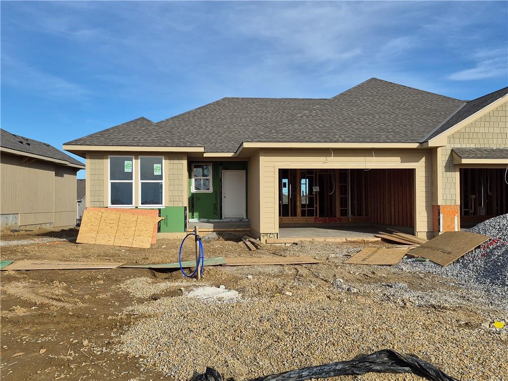 The Clover by Roeser Homes on lot 18L. Live in a beautiful GOLF COURSE COMMUNITY at this price? Yes! FINISHED PHOTOS and TOUR ARE OF A PRIOR BUT SIMILAR HOME. Home is under construction with estimated completion late 1Q. The great open plan includes arched doorways and a vaulted family room and kitchen ceiling! Just the right amount of space with the owner's suite and a second bedroom and bath on the main floor with a second living area on the lower level along with the third bedroom and third full bathroom. Tons of storage as well. Some of the other features of the home include quartz in kitchen, gas cooktop, wall oven and microwave, and a gas fireplace. A nice sized pantry and laundry room are both right off the kitchen. The covered deck is protected on three sides and is shaded from the afternoon sun. Enjoy golf course living in the beautiful Communities of Falcon Lakes!! Great highway access make all parts of the metro area easily accessible. It is less than 15 minutes to the Legends entertainment and shopping district and just 30 minutes to the airport. HOA provides lawn maintenance (mowing and treatments), maintenance of initial landscaping, snow removal over two inches, as well as paint, roof and gutters, as needed. Acclaimed Basehor-Linwood Schools!