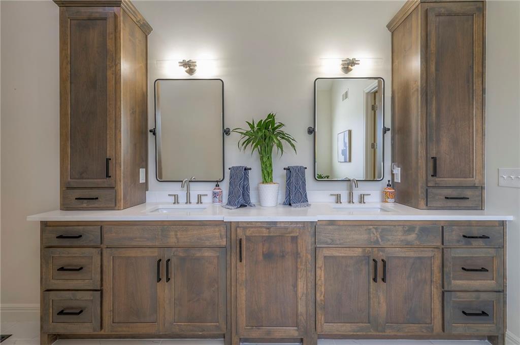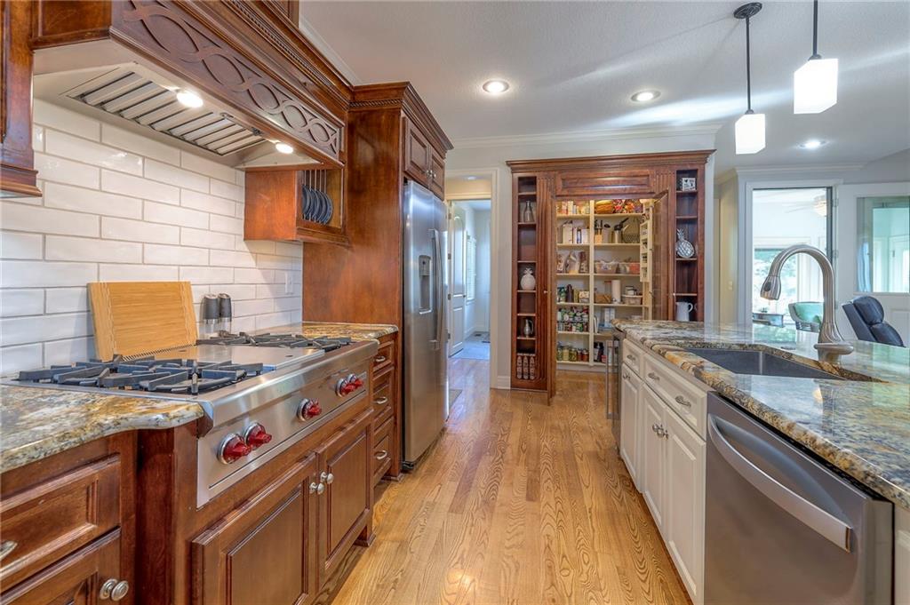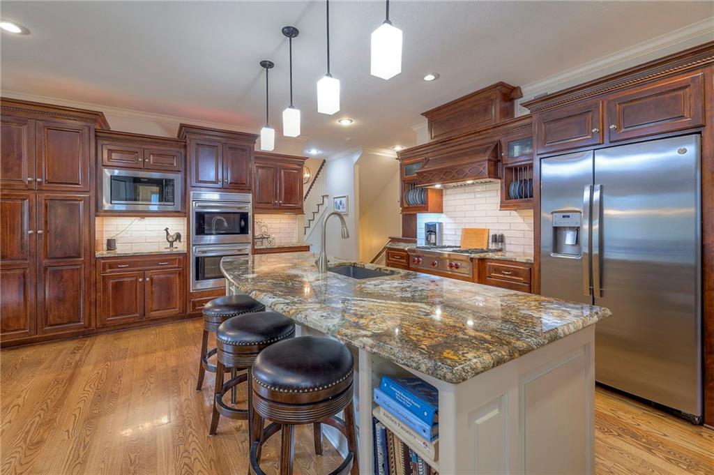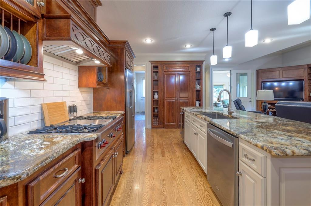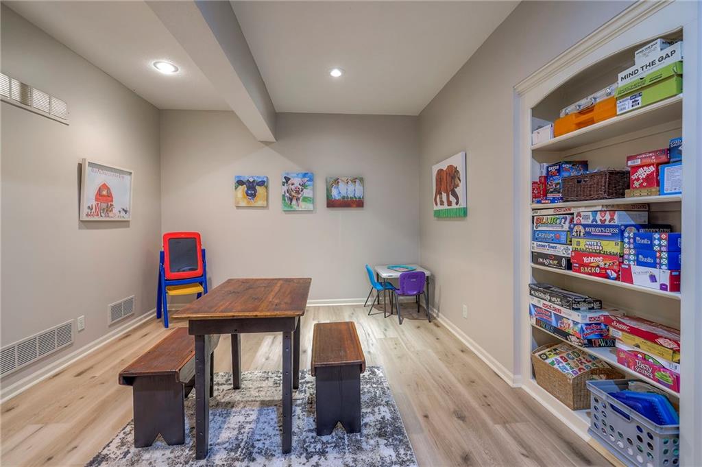 Welcome home to this stunning custom-built 1.5-story residence offering over 6,400 sq. ft. of beautifully designed living space in one of Overland Park’s most desirable neighborhoods. Step through the grand double-door entry into a welcoming foyer that sets the tone for what’s ahead. The oversized formal dining room is ideal for holiday gatherings and entertaining. The main-level living room impresses with its tall ceilings, elegant fireplace, built-in bookshelves, and incredible natural light—it’s a space you simply have to see in person. The gourmet kitchen is fabulous, featuring an oversized hearth room, a Wolf gas cooktop, a beverage fridge, a large kitchen island with seating, abundant cabinetry, and ample counter space—perfect for everyday living or hosting friends and family. The laundry room is conveniently located on the main level and offers plenty of extra space for functionality. The primary suite is a retreat of its own, complete with tray-vaulted ceilings, gorgeous hardwood floors, and a newly remodeled spa-like bathroom featuring a freestanding soaking tub, walk-in sauna, walk-in shower, and an expansive closet. Upstairs, you’ll find three spacious secondary bedrooms, each with fantastic closet space, plus a bonus loft area ideal for a reading nook, study space, or playroom. The finished lower level is an entertainer’s dream—boasting a large rec room with fireplace, second kitchen and bar area, room for a pool table, kids’ play area, and a dedicated exercise room. The home also features a suspended garage, providing an abundance of extra storage space, and the walk-up/walk-out design adds both light and convenience. Step outside to a fully fenced backyard featuring black metal fencing, a composite deck, and a large patio—the perfect setting for outdoor relaxation or entertaining. This home truly has it all—incredible design, comfort, and craftsmanship—and must be seen in person to be fully appreciated!