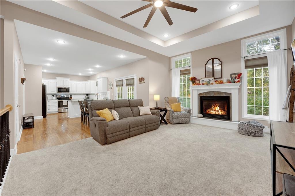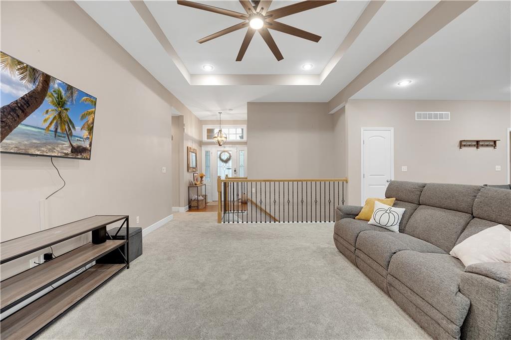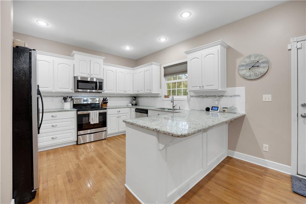 Welcome to this charming 4-bedroom ranch home nestled in the sought-after Deerfield neighborhood of Warrensburg! Main Level: Two spacious bedrooms, including a large primary suite with a beautiful bathroom and generous closet space. Lower Level: Two additional bedrooms and a spacious recreation area, featuring solid flooring throughout — perfect for entertaining or relaxing. Interior Highlights: Bright white-cabinet kitchen with granite countertops, stainless steel appliances, and solid wood flooring. Enjoy the inviting fireplace, clean carpet, and taller-than-average ceilings that add a sense of openness and charm. Exterior Features: A concrete patio, deck area, fully fenced backyard, and stone-landscaped front entry make this home move-in ready and perfect for gatherings. Don’t miss your chance to see this beautiful, well-kept home in one of Warrensburg’s most popular neighborhoods — schedule your showing today!