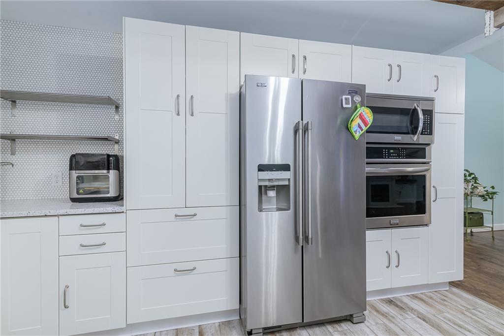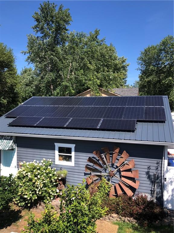 COMPLETELY UPDATED AND MOVE-IN READY, THIS STUNNING 3-BEDROOM RANCH BLENDS MODERN COMFORT WITH SMART, ENERGY-EFFICIENT LIVING! Thoughtfully renovated from the ground up, the home features all-new plumbing, electrical (including a new main line), windows, flooring, kitchen, and baths—plus a new metal roof added last year. With 36 solar panels for low energy costs, this home is as practical as it is beautiful. The bright, open floor plan offers vaulted ceilings, a cozy fireplace in the living room, and a chef’s kitchen with a gas cooktop, built-in appliances, and custom countertops. The primary suite impresses with vaulted ceilings, double vanities, a spacious walk-in shower, and dual walk-in closets. A sunny enclosed porch opens to a private backyard with a gazebo, garden space, and an above-ground pool with a new liner—perfect for summer relaxation. The detached garage provides extra storage with an upstairs loft, all on a well-maintained corner lot with privacy fencing and a convenient location close to everything.