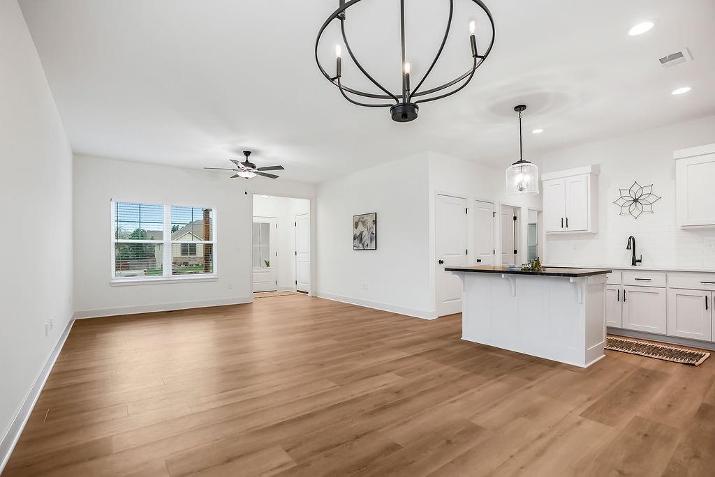 Beautiful new build in desirable Hidden Creek subdivision. This open-concept ranch home has 3 bedrooms, 2 full bathrooms, and all living on the main floor. Kitchen has plenty of storage, large island, pantry, and quartz counter tops. Spacious bedrooms and closets with built-in shelving. Bathrooms are tastefully finished with tile showers, high end fixtures, and glass shower enclosure. FULL basement with egress window and stubbed for bathroom just waiting for your finishing touches. Landscaped with sod, mulching, and shrubbery. Covered porches in front and back. Window blinds installed.