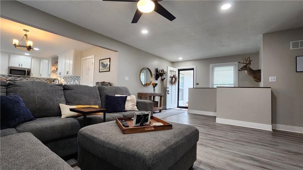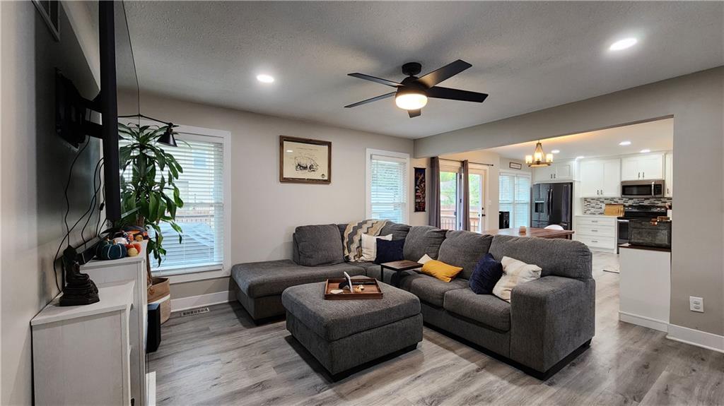 Welcome Home! This charming 3-bedroom, potential 5-bedroom, 3-bath ranch home is nestled in a highly sought-after west side Excelsior Springs neighborhood. Situated on a spacious, fenced corner lot, it offers the perfect blend of privacy and convenience. Step inside to discover an open floor plan featuring brand-new LVP flooring, neutral paint tones, and a beautifully updated kitchen with custom cabinets that provide ample storage for all your culinary needs. The modern finishes create a warm, inviting atmosphere—ideal for family gatherings or entertaining guests. The main level boasts three generously sized bedrooms, including a master suite that serves as a tranquil retreat with an ensuite bathroom for added comfort and privacy. The fully finished basement expands your living space, perfect for a home office, media room, or recreation area. Two nonconforming bedrooms offer flexible options to potentially create a five-bedroom home—endless possibilities to tailor the space to your needs. Outside, the expansive ground-level deck invites outdoor lounging, dining, or entertaining, while the updated rock landscaping enhances the home's curb appeal. Located conveniently close to shopping, restaurants, parks, and major highways, this home offers both comfort and accessibility. Don’t miss your chance—schedule a showing today and see firsthand the wonderful lifestyle that awaits you in this beautiful ranch home!