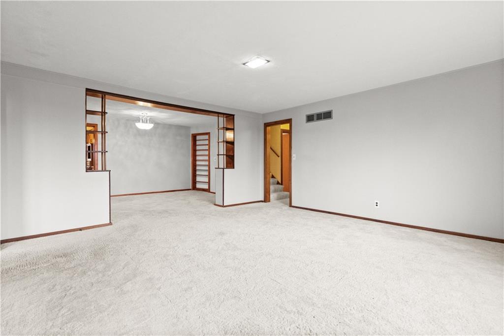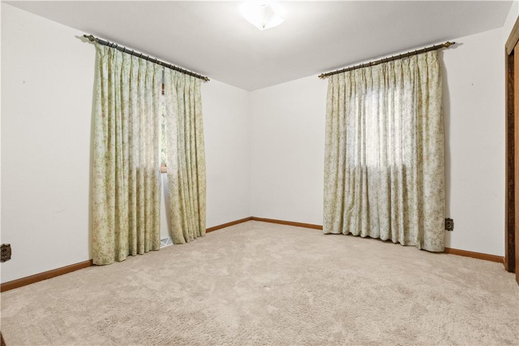 5-Acre Private Estate with Classic Farmhouse Charm! Discover the tranquility of country living with this classic two-story residence, perfectly situated on 5 expansive acres of lush, rolling green space. The home features a timeless exterior defined by rich red brick construction and a dark shingle roof, accented by charming dormer windows that hint at the generous living space inside. The sprawling acreage offers privacy, beautiful views, and endless potential for gardening, recreation, or equestrian pursuits, framed by mature trees and fencing. Traditional Interiors with Warm Wood Accents! Step inside to find voluminous, light-filled rooms with an abundance of original, character-filled details. The main level features a large living area centered around an impressive, floor-to-ceiling brick fireplace, providing a cozy focal point and architectural separation from the kitchen. This area is finished with soft, neutral carpeting and contrasting natural wood trim. The heart of the home is a wide-open kitchen and dining area boasting beautiful hardwood flooring. It is appointed with ample natural oak cabinetry and features a classic tiled backsplash, ready for the chef's touch. A built-in oven and microwave unit completes the functional layout. Upstairs offers substantial bedrooms and a unique bonus space. A standout feature is this large vaulted room, which showcases stunning exposed wood beams across the ceiling, giving it a dramatic, rustic-chic atmosphere—perfect for a studio, or recreation room. Additional bedrooms are generously sized, featuring plush carpeting, bright windows, and the potential for personalization. This property provides the perfect blend of private, expansive outdoor living and a warm, classic interior with excellent "bones" awaiting your personal upgrades and style!