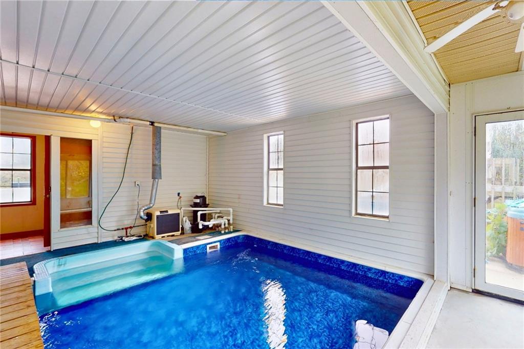 Escape to a private setting on approximately 8 peaceful acres with this exceptionally versatile 6-bedroom, 3.5-bathroom home. Designed for year-round enjoyment, this property features the rare benefit of both an indoor AND an outdoor pool, providing endless options for relaxation and exercise no matter the season. The spacious main floor includes a traditional formal dining room and offers an intelligent layout. A unique loft with a full bathroom sits conveniently off the living room. The Primary Suite is a true retreat, boasting its own secluded private deck and a bonus master bedroom loft ready to be transformed into a cozy reading nook or personalized storage. The en-suite bath offers accessible comfort with a walk-in tub. Downstairs, the partially finished basement provides tons of flexible square footage for storage, recreation, or future customization. This is an incredible opportunity to own a large home with remarkable amenities and significant acreage.