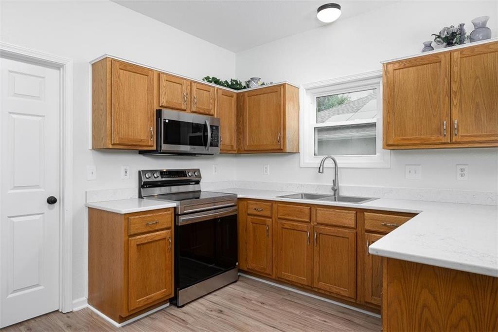 Check out this beautiful updated home! New flooring throughout, updated kitchen with new quartz counter tops, All new stainless kitchen appliances. Updated bathrooms, Newer Windows, Newer HVAC. Brand new Deck. Basement is pre-plumbed for a bath. Brand New sliding glass door. Move in ready!