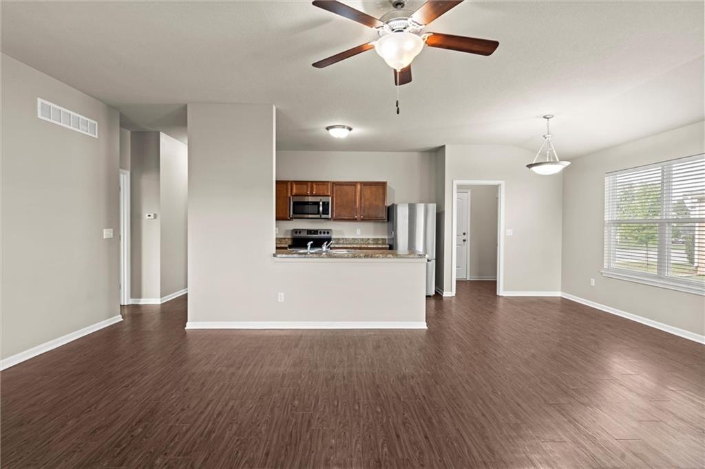 This three bedroom, two bathroom home offers an open floor plan with a spacious kitchen connected to the main living area. Common areas feature luxury vinyl plank flooring for easy maintenance. The property also includes a full unfinished basement, providing additional space for storage, office, craft, or play. Located near shopping and major employers.