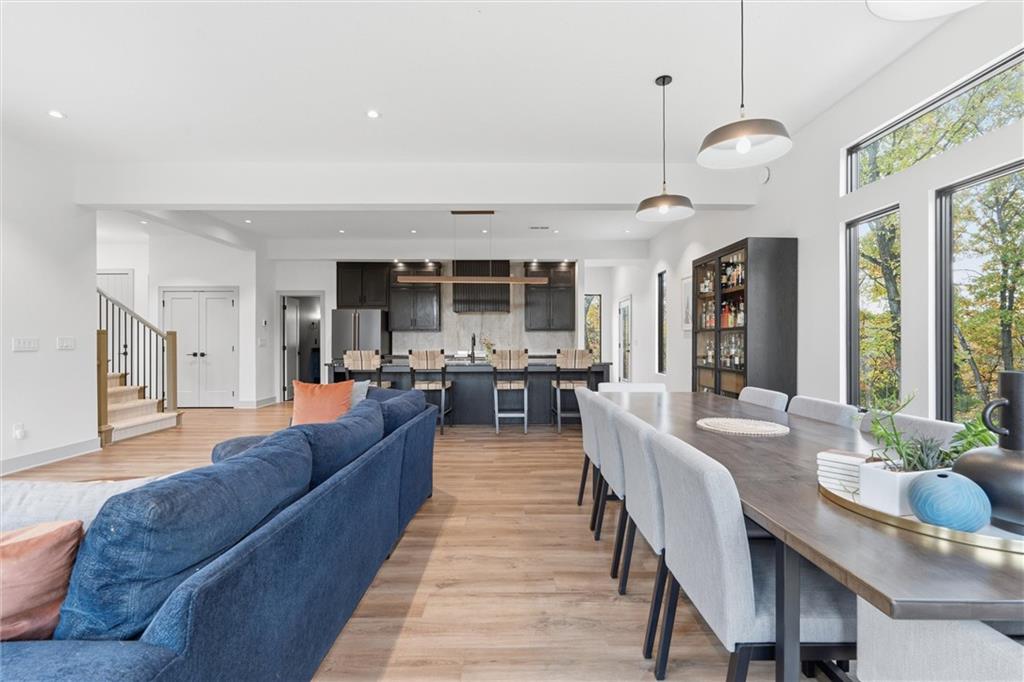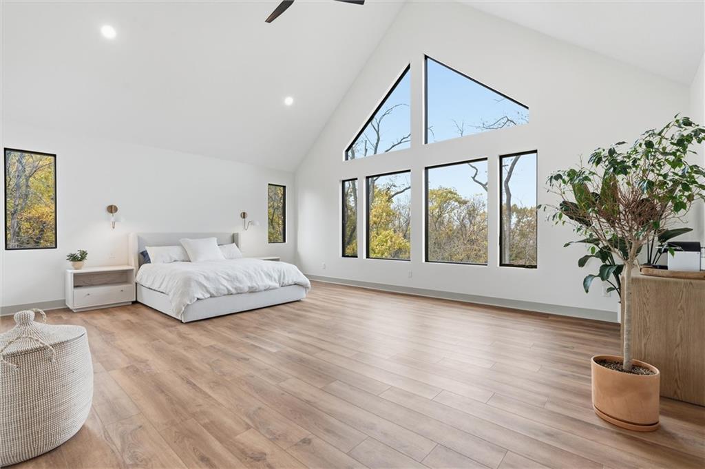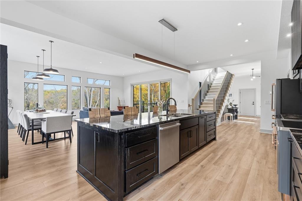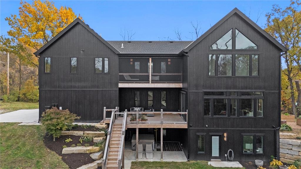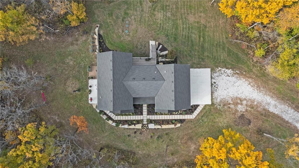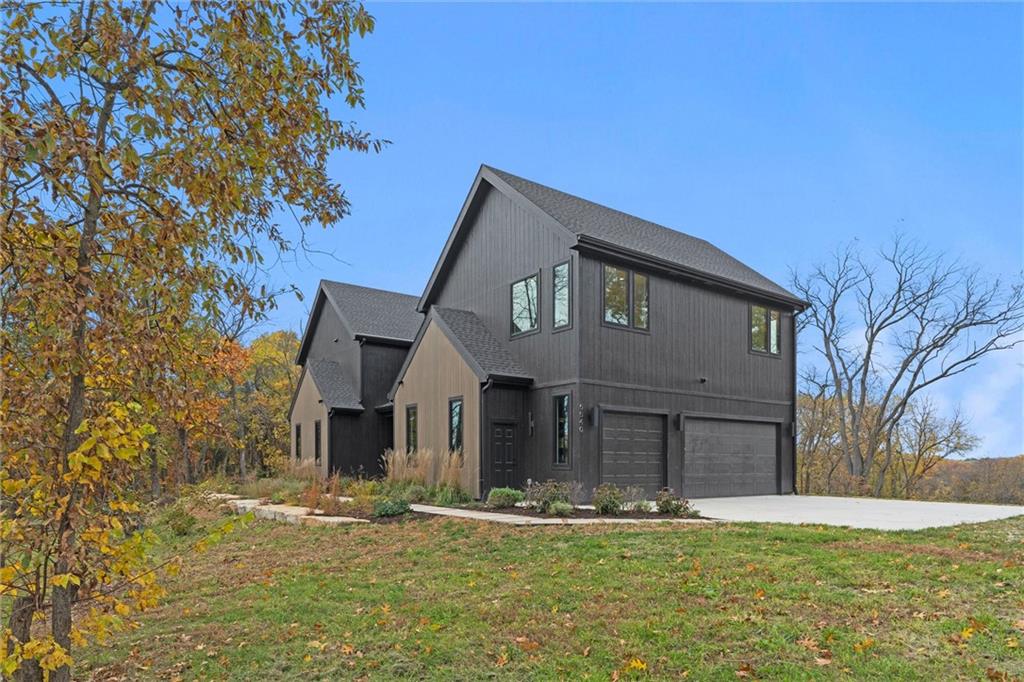 Welcome to a modern masterpiece set on 30-acres that captures the essence of luxury, privacy, and contemporary design. Built just two years ago, this extraordinary estate offers a rare opportunity to own a slice of countryside without sacrificing convenience. The home’s striking architecture and expansive views make a powerful statement—clean lines, open spaces, and walls of glass that bring the outdoors in. Inside, you’ll find an open-concept floor plan bathed in natural light, featuring soaring ceilings, designer finishes, and a seamless flow. The gourmet kitchen stands as the heart of the home with premium appliances, custom cabinetry, and an oversized island ideal for gathering. A walk-in pantry and prep kitchen with extra refrigeration provide exceptional storage. The spacious living area extends to the outdoor patio, where you can unwind and take in panoramic vistas of rolling land and endless skies. The master suite is a true retreat with stunning views that invite tranquility. Complete with vaulted ceilings, walk-in his and hers closets, and a spa-like bathroom with soaking tub, duel vanities, makeup vanity and heated floors. Don't miss the screened in martini deck of the master suite and bedroom-level laundry! The finished walk-out basement boasts plenty of extra living space with a rec room, office and non-conforming 5th bedroom, full bath, and mudroom with dog bath. Step outside to a stunning woodland setting—low-maintenance landscaping, 10x16 greenhouse, walking paths, wildflowers, and abundant wildlife including turkeys, deer, and songbirds. The large deck, covered patio, and hot tub create the perfect entertaining space. Just minutes from Legends shopping, dining, the KC Speedway, and more, with easy highway access to downtown and the airport, this peaceful retreat feels secluded yet connected. With modern architecture, luxurious amenities, and unbeatable proximity to Kansas City, this exceptional property defines refined country living at its best.
